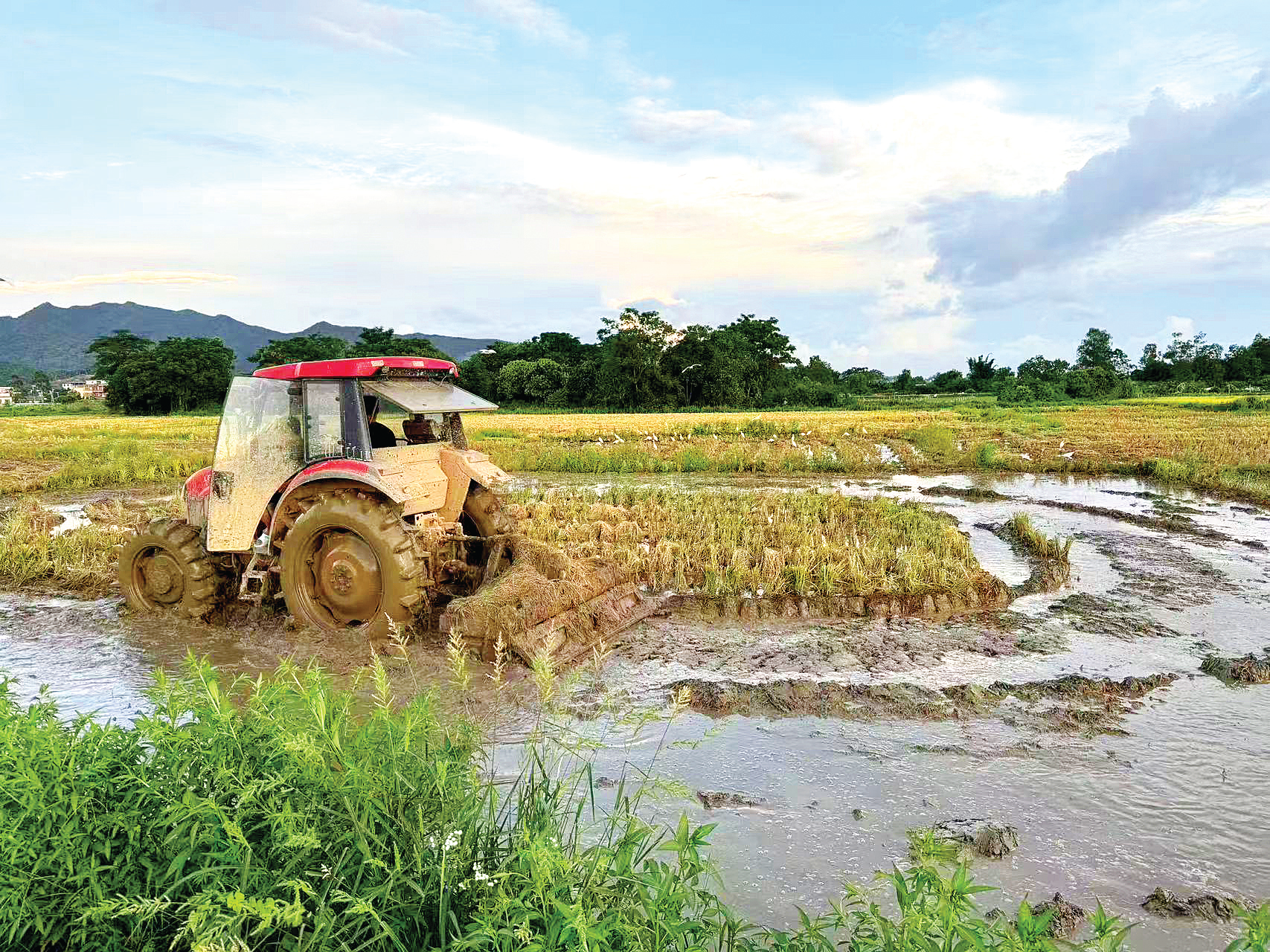 平潭鎮(zhèn)新崗村的稻子收割后進(jìn)行秸稈還田,增加土壤有機(jī)質(zhì),改良土壤結(jié)構(gòu);葜萑請笥浾唿S尉宏 通訊員李冬嫻 攝