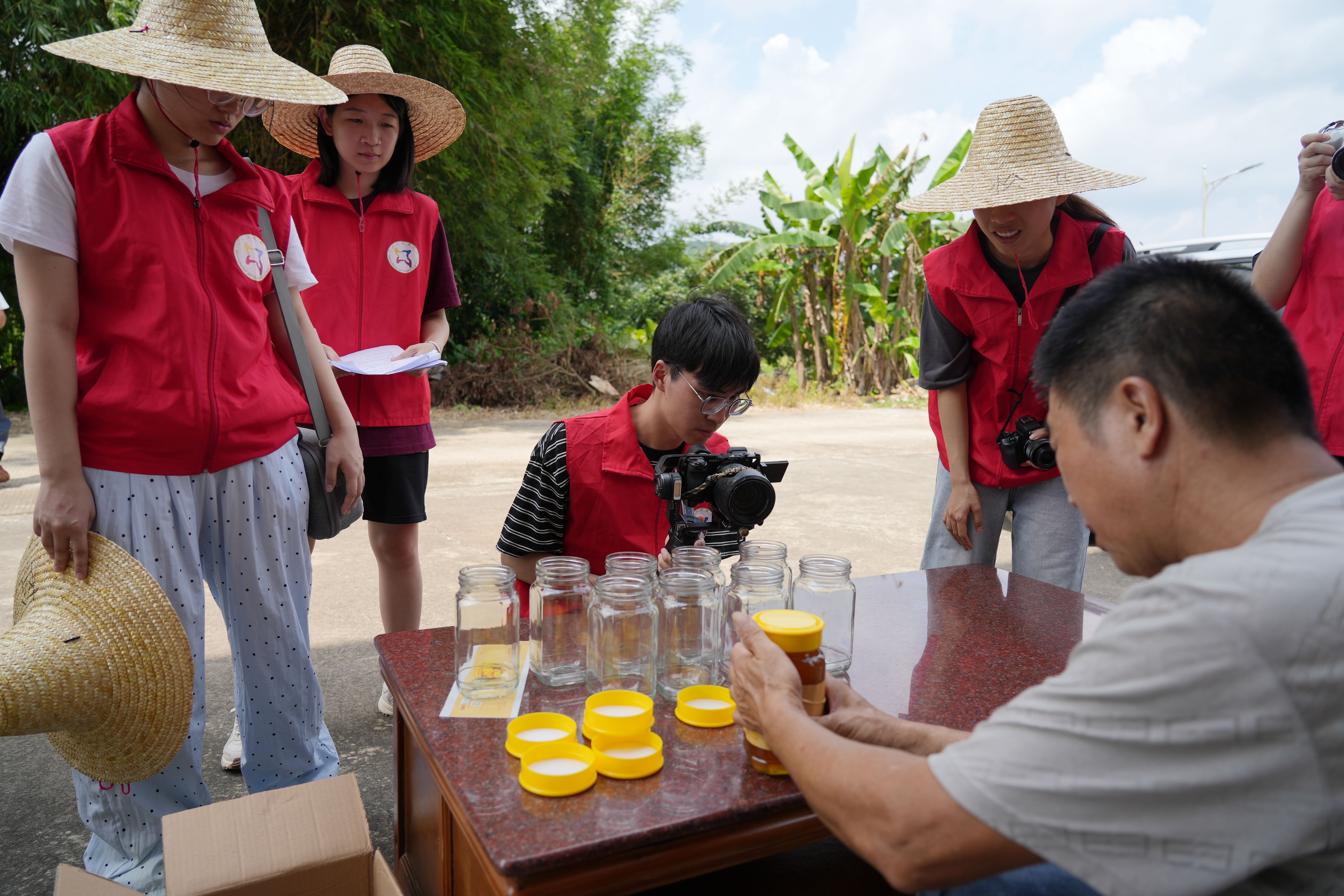 “這些大學(xué)生非常熱心地幫忙宣傳我們的蜂蜜,我們都很支持!眳橇(jiān)說,剛開始上鏡有些不習(xí)慣,但看著這些異鄉(xiāng)孩子們這么努力為家鄉(xiāng)宣傳,他很快地融入了角色,還帶學(xué)生們實(shí)地了解村子的風(fēng)土人情。