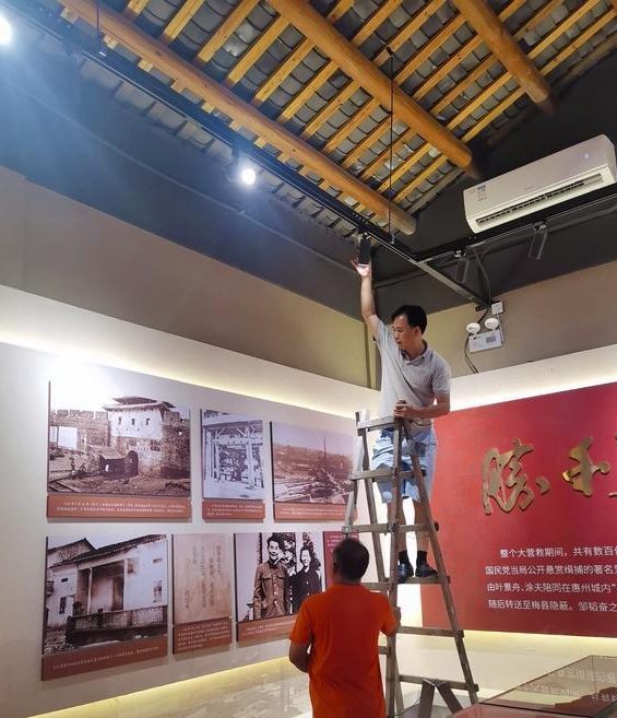 駐新圩鎮(zhèn)幫鎮(zhèn)扶村工作隊(duì)在盧偉如故居檢查室內(nèi)照明情況。