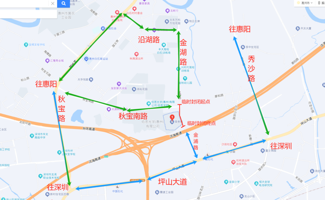 2、深圳至惠陽的車輛從封閉段終點繞行: