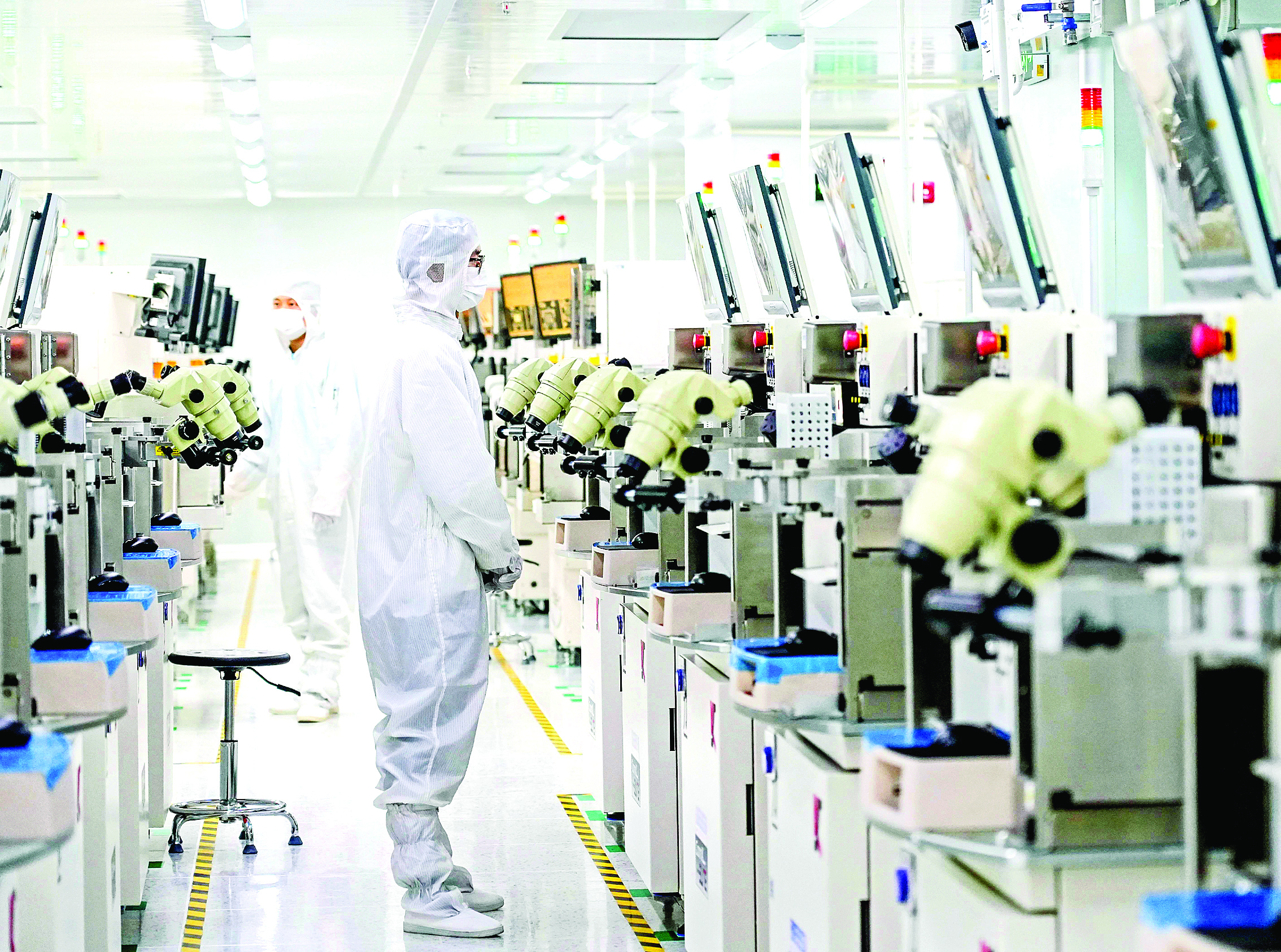 穿上全密封一體化防護(hù)服、防塵鞋,戴上全密封手套,走進(jìn)位于秋長的廣東長華科技有限公司千級(jí)無塵車間,一條條生產(chǎn)線整齊排列,一臺(tái)臺(tái)嶄新的精密自動(dòng)化設(shè)備忙碌運(yùn)作。這里建成了多種產(chǎn)品封裝生產(chǎn)線,所生產(chǎn)的產(chǎn)品廣泛應(yīng)用于汽車、筆記本電腦、光伏儲(chǔ)能、智能家居、無線通信等消費(fèi)類和工業(yè)類電子領(lǐng)域。