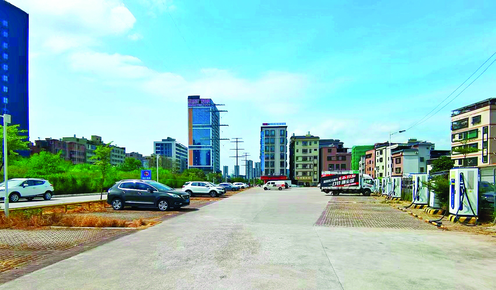 茶園村路口的停車場可提供200個車位。 惠州日報記者許文昌 通訊員葉文婷 攝