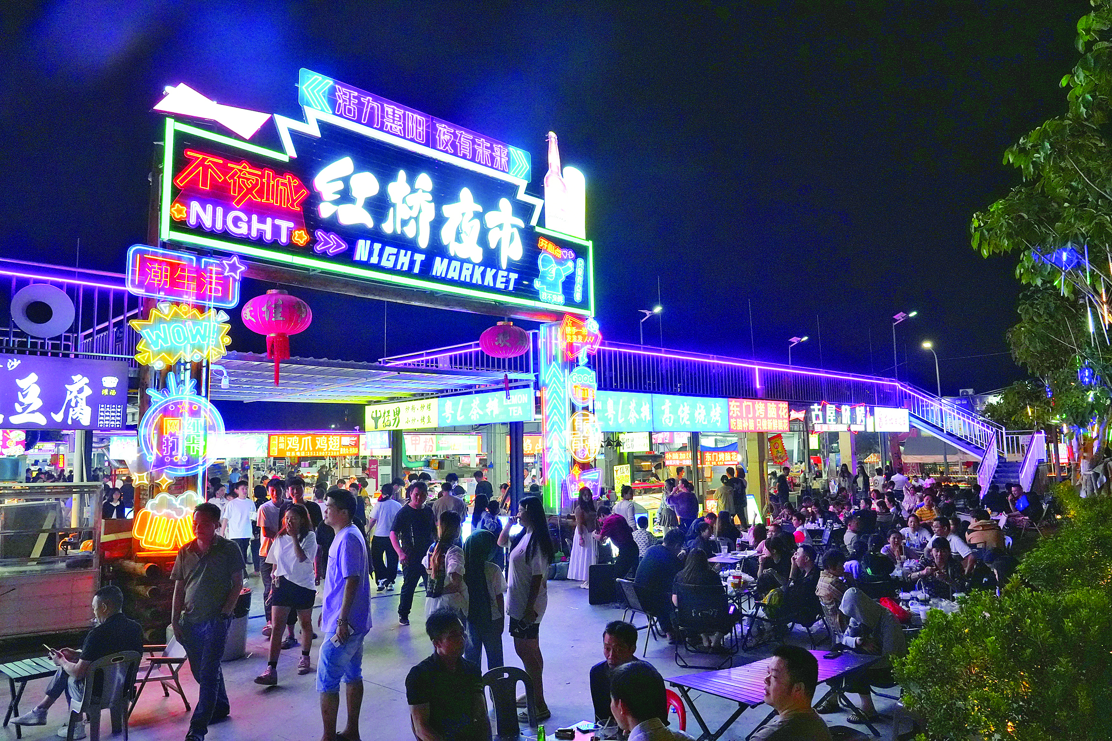 市井長(zhǎng)巷,聚攏是煙火,攤開(kāi)是人間。夜市經(jīng)濟(jì)讓惠陽(yáng)的夜晚“亮”起來(lái)、人氣“聚”起來(lái)、經(jīng)濟(jì)“旺”起來(lái)。據(jù)統(tǒng)計(jì),周一至周四,紅橋夜市的客流量在3000~5000人次;周五至周日,夜市人流達(dá)8000~10000人次。夜市已經(jīng)成為了推動(dòng)當(dāng)?shù)丶w經(jīng)濟(jì)增長(zhǎng)的新引擎,也塑造成惠陽(yáng)夜間消費(fèi)新地標(biāo)。