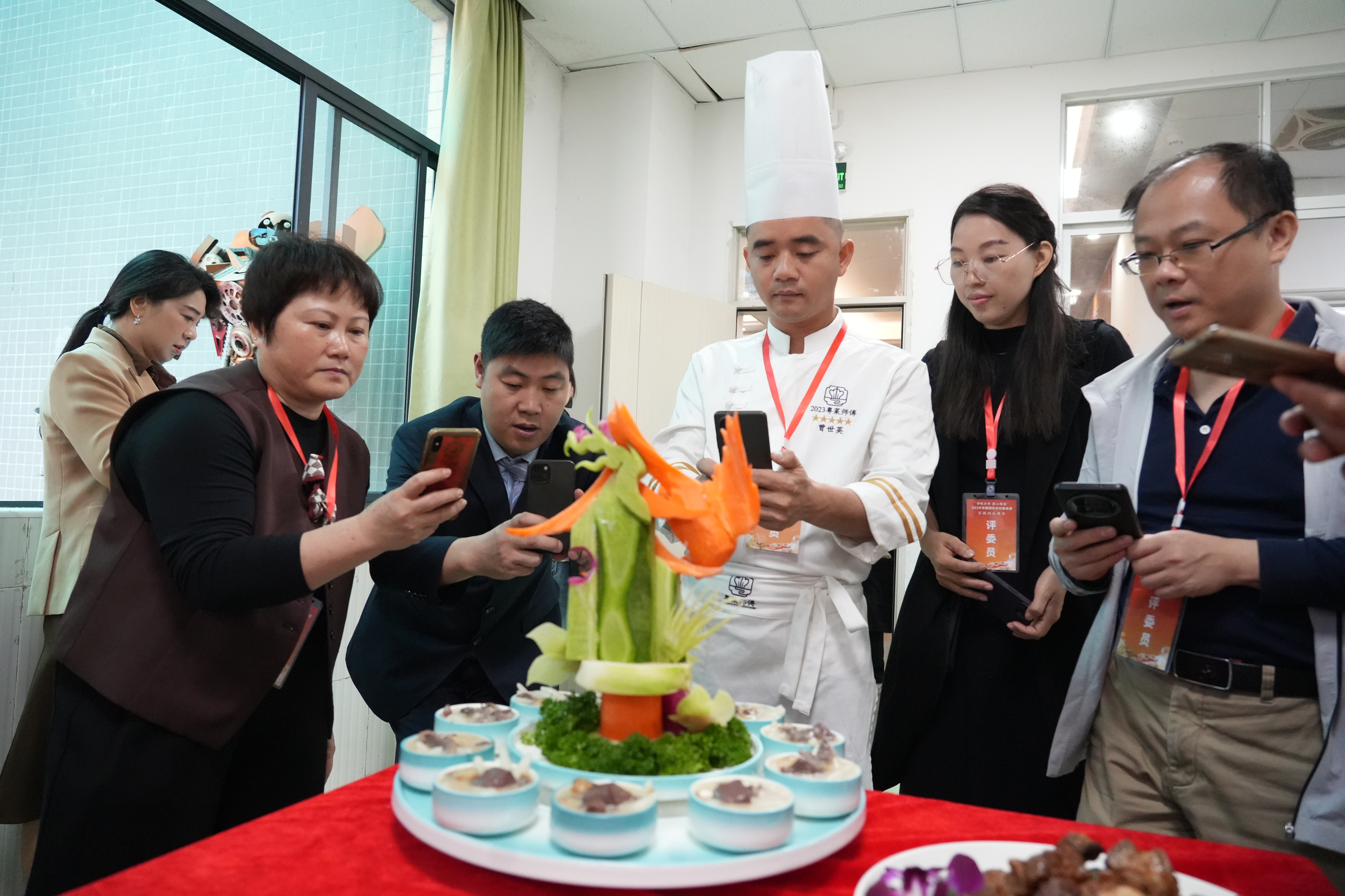 另一邊,在鄉(xiāng)村美食廚藝展現(xiàn)場,來自惠陽區(qū)各鎮(zhèn)街的廚師代表紛紛亮出絕活,結(jié)合本地特色食材,創(chuàng)作出一道道色香味俱佳的菜品。黃金酥丸湯、釀豬紅、胡椒鴨、茨菇炸豬肉,贏得評委陣陣叫好;蓐枀^(qū)餐飲協(xié)會會長曾世英表示,年輕廚師們在食材上做了很多文章、有了很多新的突破,對惠陽餐飲來說是一件好事。