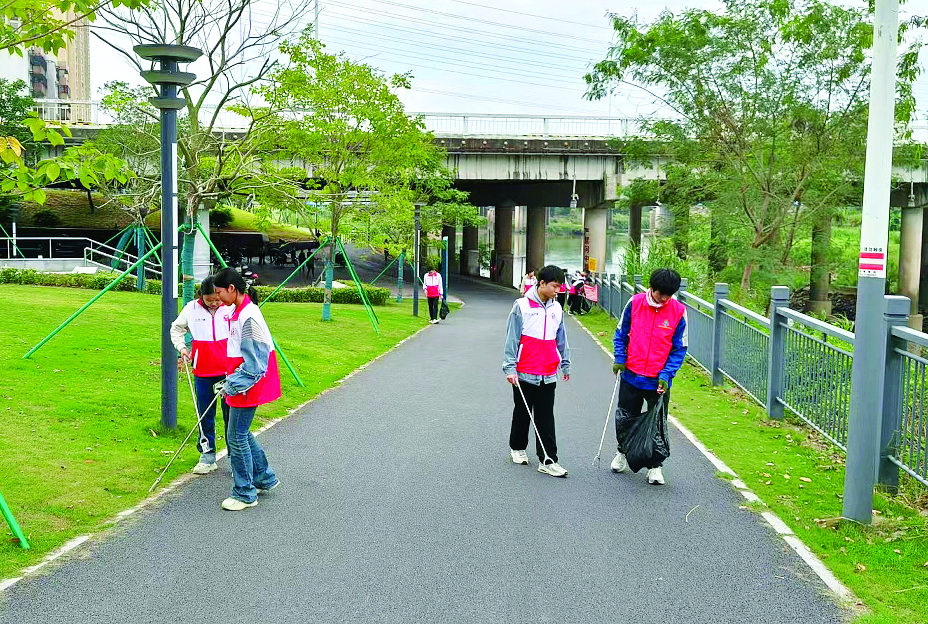 精致志愿服務(wù)隊(duì)在壩尾社區(qū)開展“河小青”志愿服務(wù)。