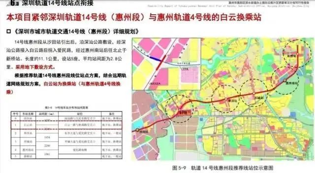 2021年6月,惠州市惠陽區(qū)自然資源局發(fā)布的相關(guān)公告中再次透露,14號線惠州段從沙田站引出后,建設(shè)長度約11.1公里,設(shè)站5座,分別是白云站、草洋站、開城站、惠州南站、新橋站,其中白云站為換乘站,與惠州軌道4號線換乘。