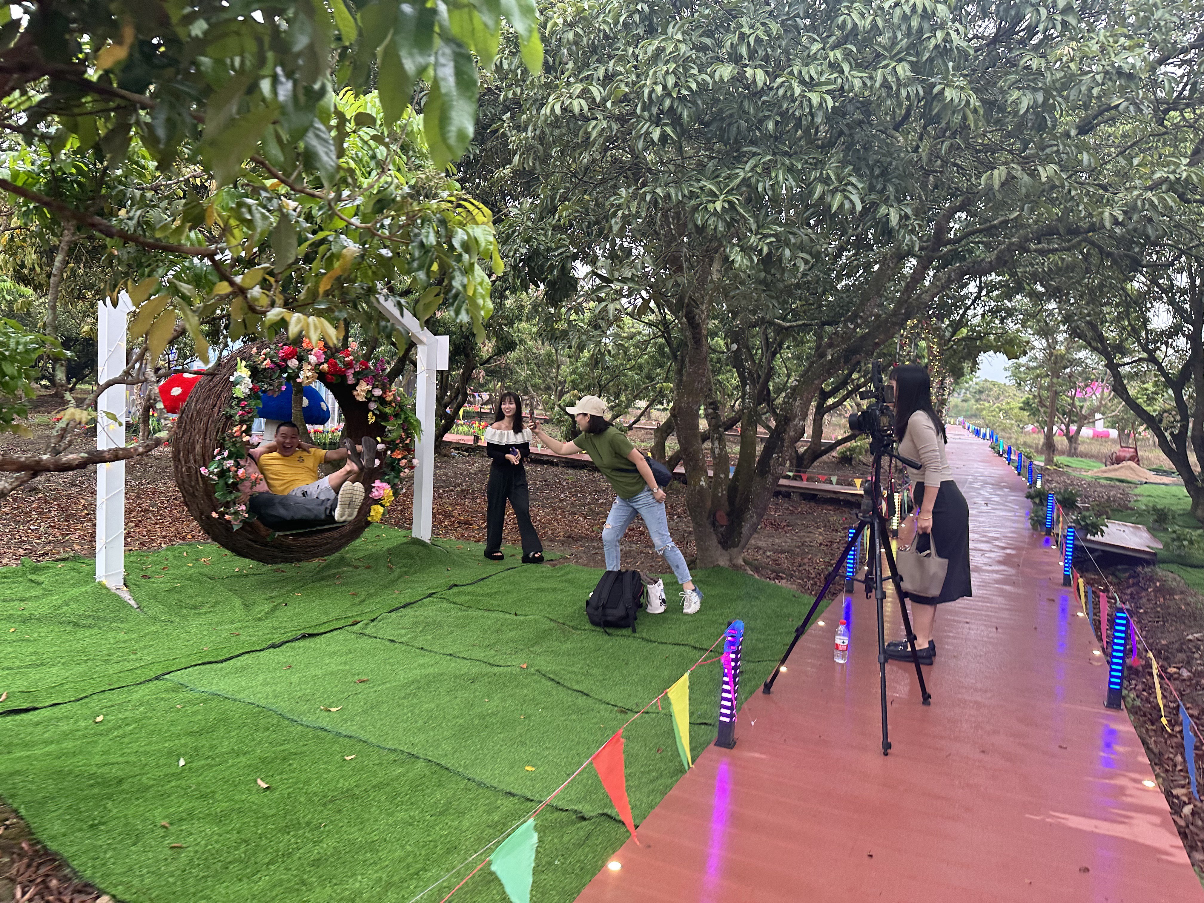 游客在平潭鎮(zhèn)陽(yáng)光村七彩四季綠光景園打卡。東江圖片社供圖