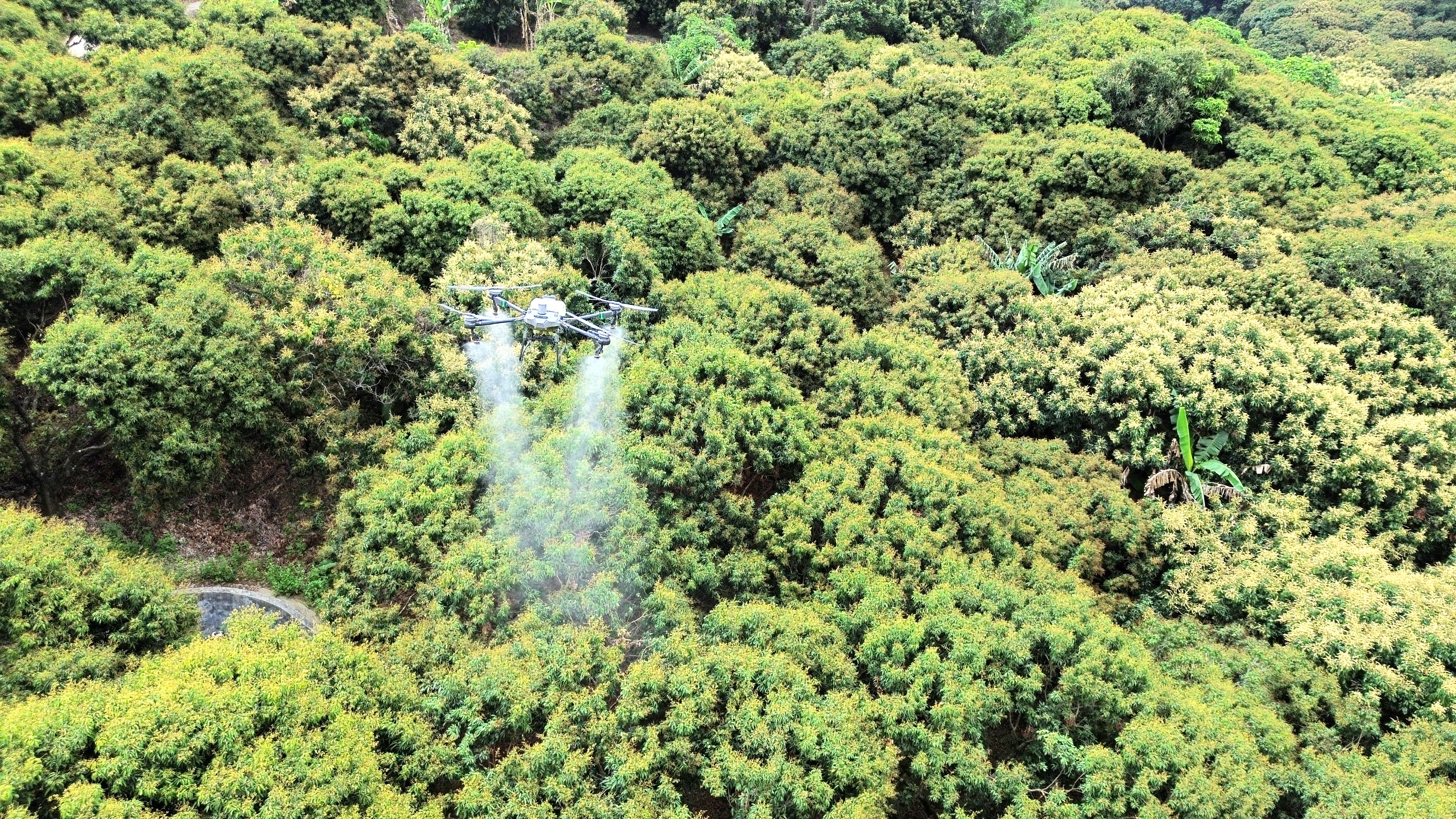 “過去傳統(tǒng)的人工噴藥方式存在諸多弊端。太高的樹難以噴到,太陡的山根本上不去,不僅效率低下、耗費大量人力和時間,還存在諸多安全隱患!睆垊捉榻B,鎮(zhèn)隆的荔枝多生長在山坡林間,農(nóng)資運送上山較為艱難,不少只能疏于管理、放任生長。這樣一來,轄區(qū)整體病蟲害防治效果參差不齊。