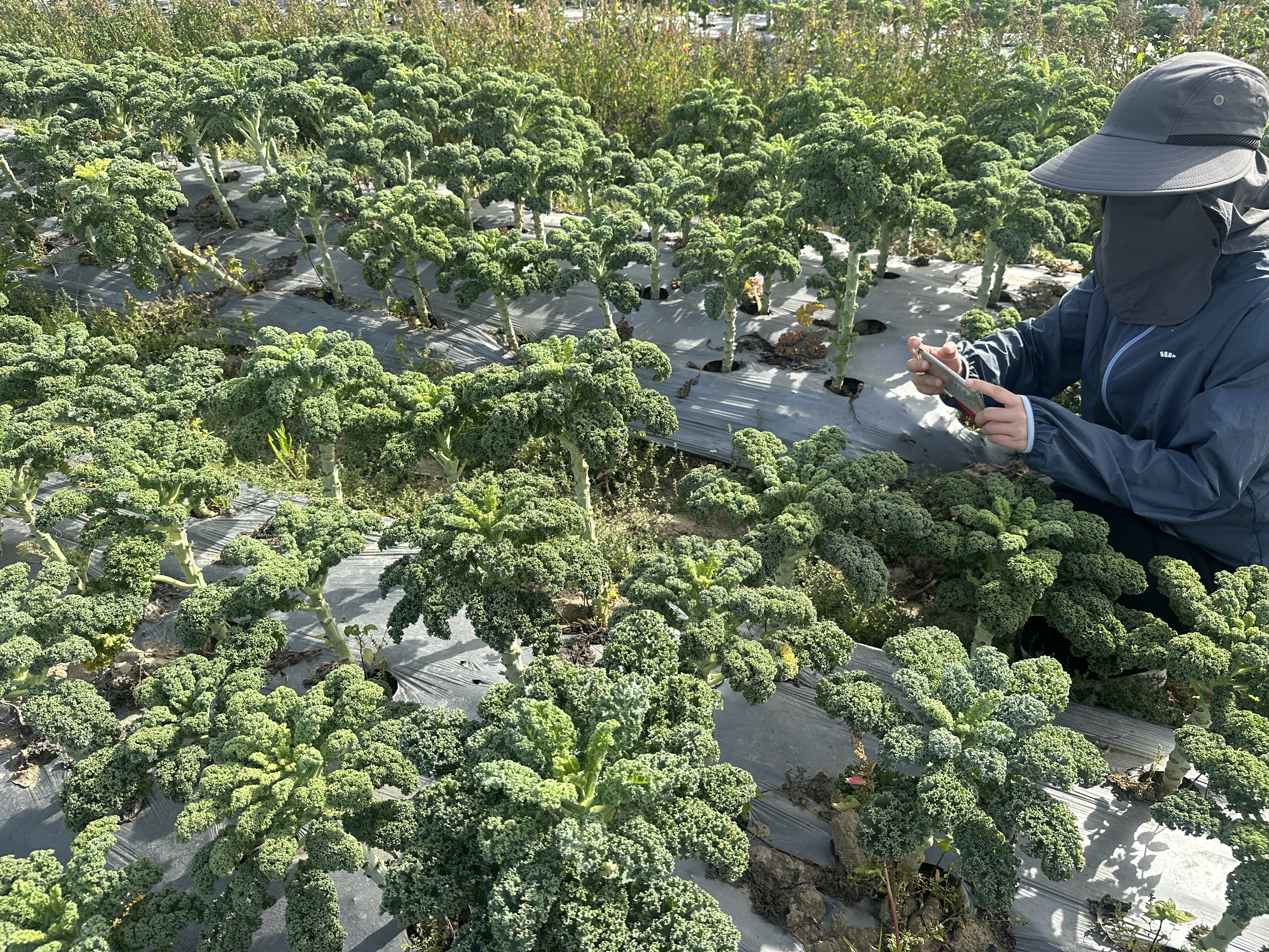 為減少蟲害,他瞄準氣溫降低的時候,在去年12月播種羽衣甘藍,今年1月收獲。為減少管理成本,在夏季來臨前,他輪換種植其他應季農(nóng)作物。