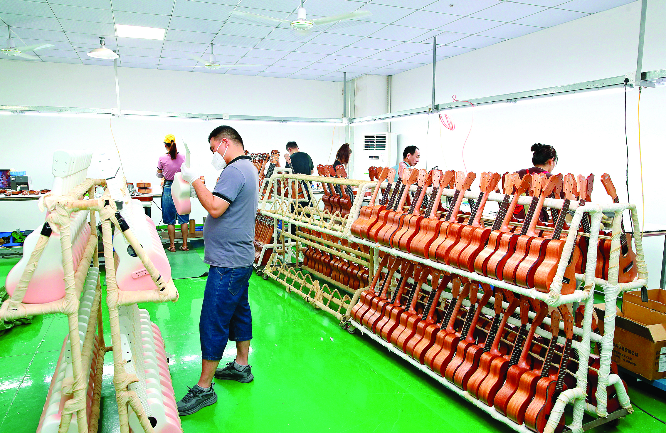 上世紀(jì)90年代,中國臺(tái)商帶來的吉他產(chǎn)業(yè)在惠陽成長壯大,最高峰時(shí)出產(chǎn)全國2/5、全球1/5的吉他,尤克里里銷售更是占全球80%,形成了從原材料供給、半成品、電子五金配件、吉他裝飾包裝、吉他數(shù)控機(jī)械等一系列完整的產(chǎn)業(yè)鏈。