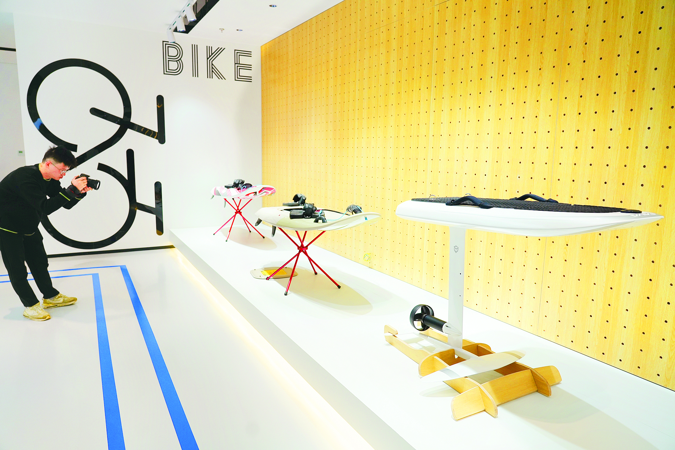 薩瓦運(yùn)動(dòng)器材公司推出的碳纖維動(dòng)力沖浪板;葜萑?qǐng)?bào)記者許文昌 攝