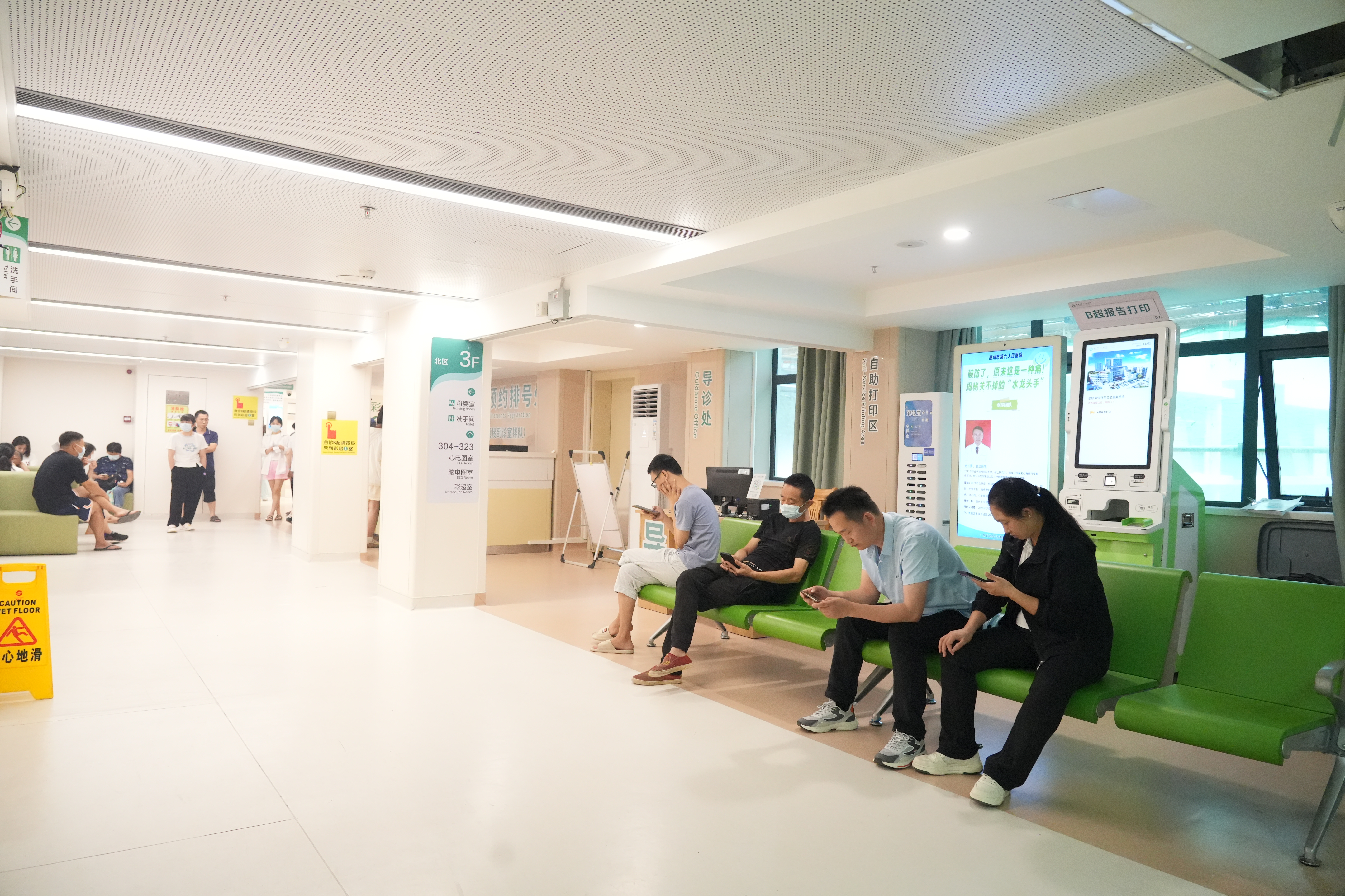 走進惠州市第六人民醫(yī)院(以下簡稱“惠州六院”)綜合樓北區(qū)的病房,陽光透過寬大的窗戶,照在暖色調(diào)的墻面上,灑下一片溫暖的光輝,讓人有一種舒適感,“改造后像住進精品酒店,心里都亮堂了!”正接受術(shù)后康復(fù)的張伯笑著說。
