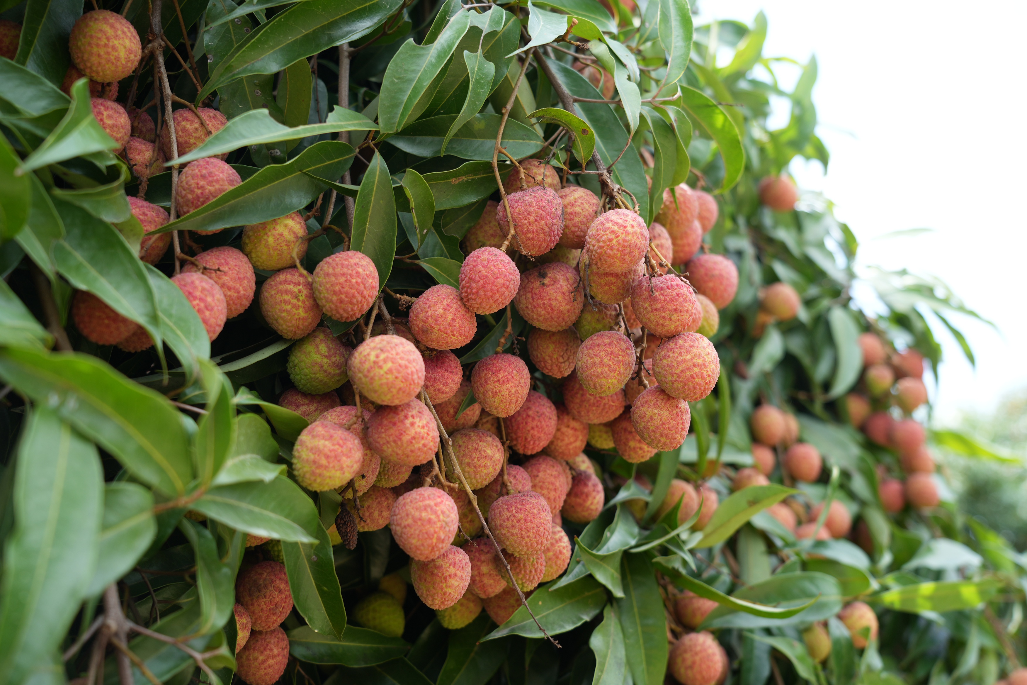 紅彤彤的荔枝掛滿枝頭。