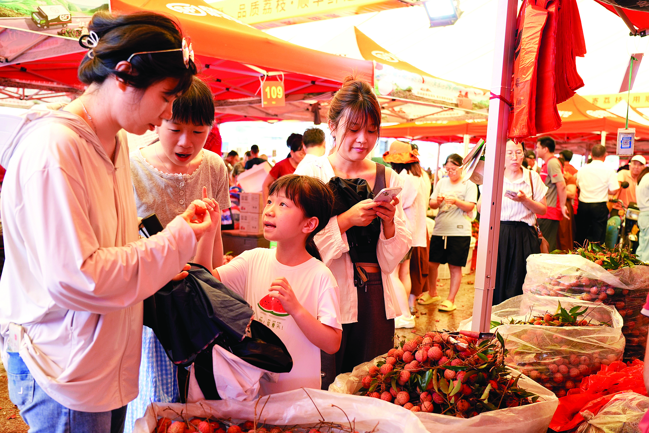 當前,鎮(zhèn)隆荔枝陸續(xù)上市銷售,RCEP廣東惠州(鎮(zhèn)。├笾灰字行拿刻鞜狒[非凡,果農采摘荔枝后送到這里售賣;蓐枀^(qū)農產品質量安全中心對入場前的荔枝開展快速檢測,檢測合格后方能上市。劉榮耀表示:“根據荔枝用藥情況,對上市前的荔枝產品開展速測,做到‘用什么藥檢什么藥’!
