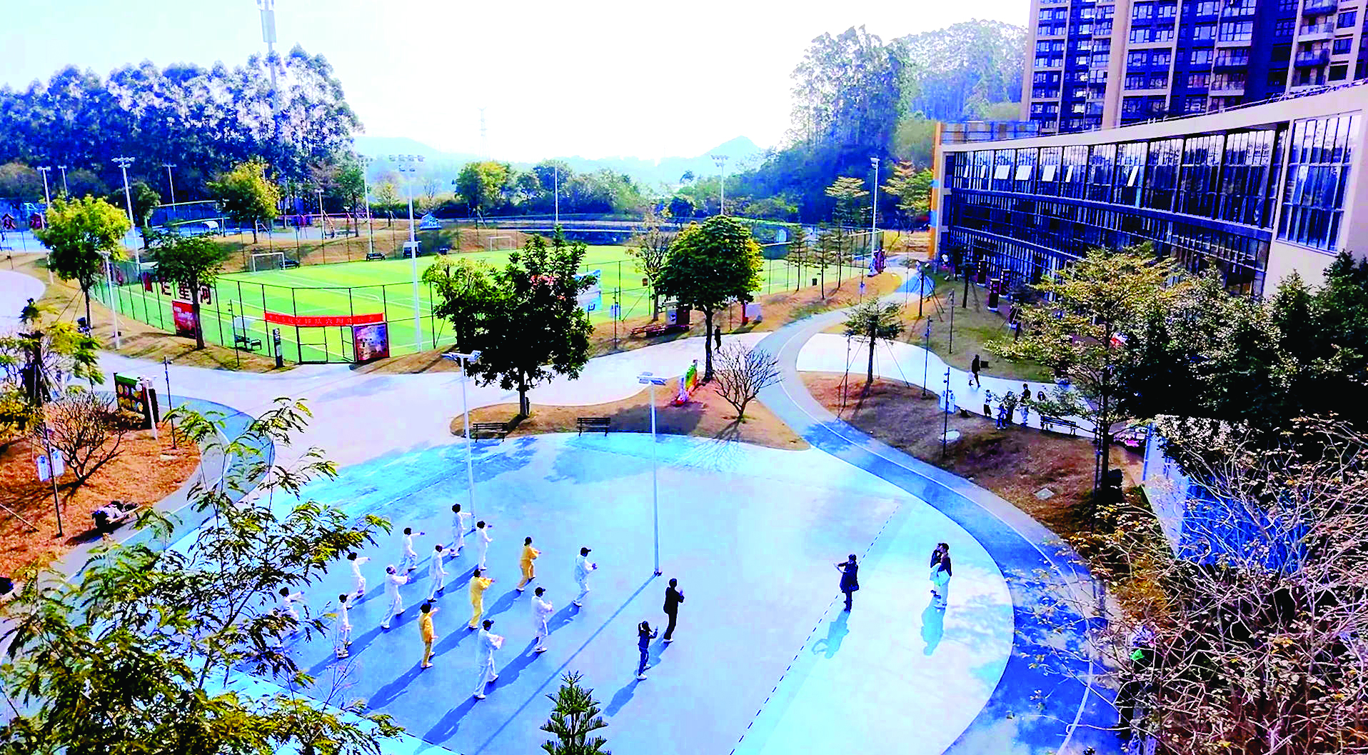 居民在惠陽淡水星河社區(qū)文體中心練習(xí)太極拳;葜萑?qǐng)?bào)記者許文昌 攝