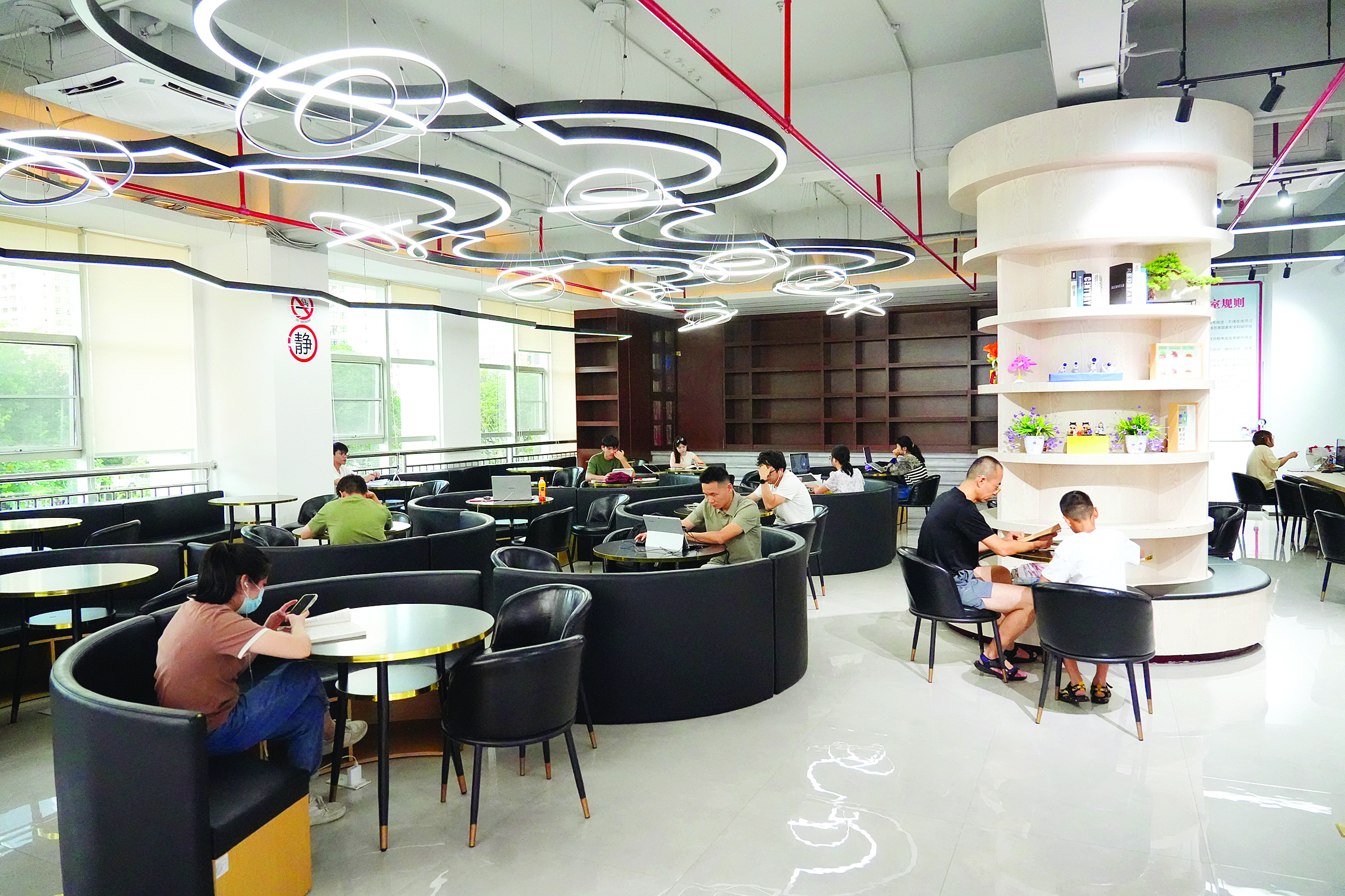 讀者在惠陽區(qū)圖書館閱覽室閱讀。