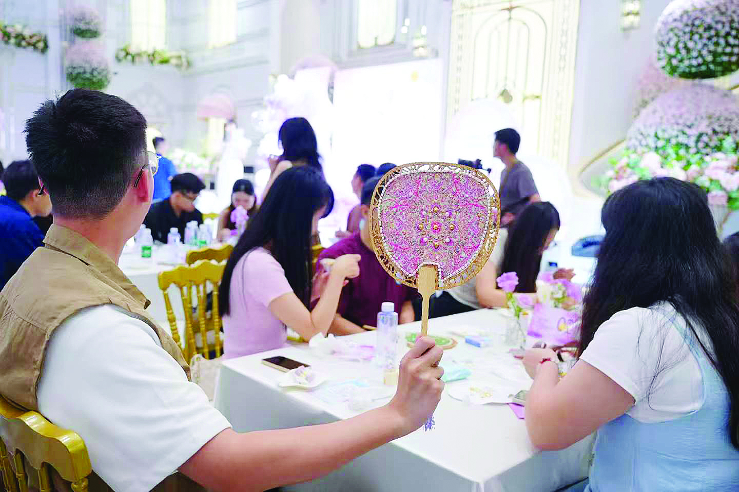 在溫馨雅致的“穿針乞巧”環(huán)節(jié)中,嘉賓們八人一組圍坐案前,凝神屏息,指尖輕捻紅絲,緩緩引線穿針,方寸之間,讓青年男女沉浸式感受民俗獨特魅力,在互動中溯源千年浪漫,深化對七夕淵源與習俗的理解,既是對傳統(tǒng)技藝的致敬,亦是對匠心與美好的現(xiàn)代延續(xù)。一縷紅線、一枚細針,串起的不只是古今智慧,更是對幸福生活的巧思與期盼。