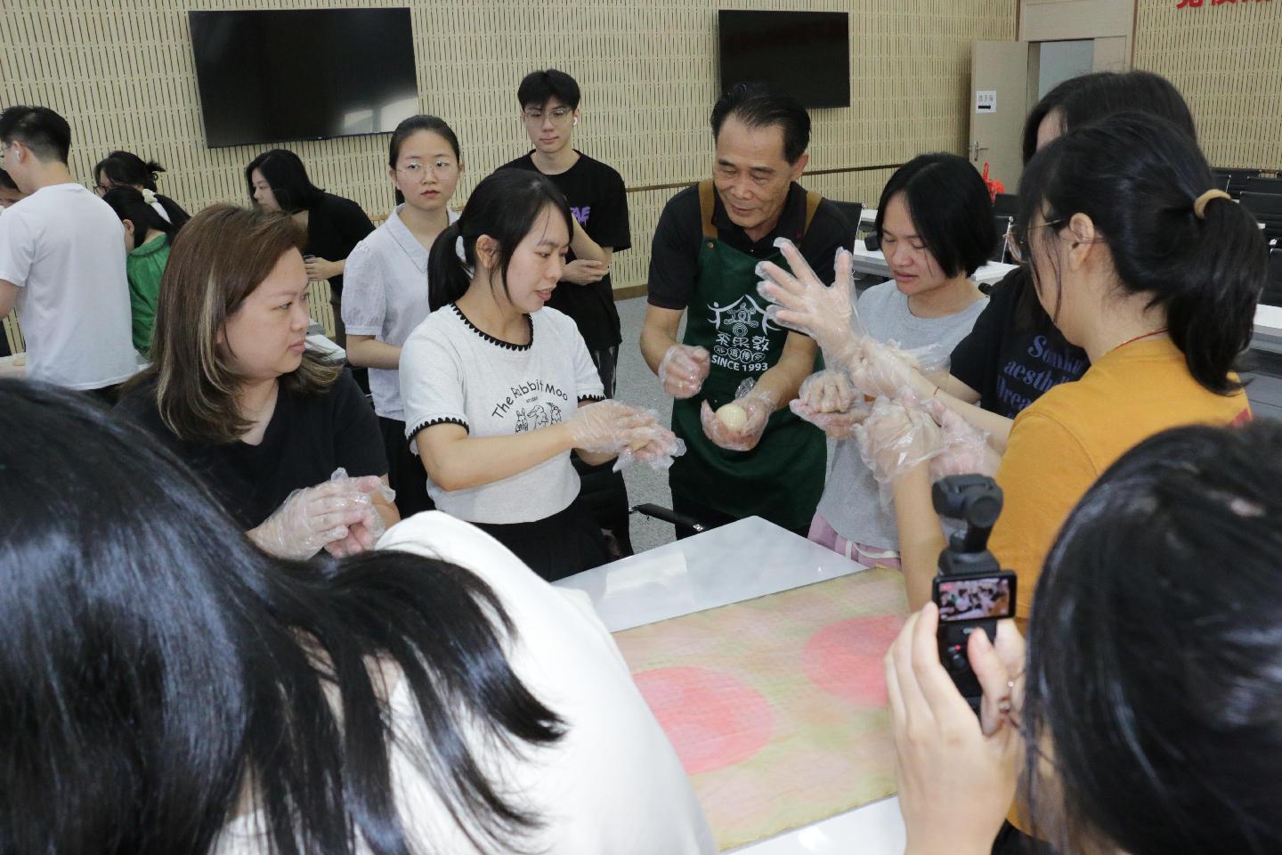 活動(dòng)開(kāi)始,實(shí)踐所工作人員為現(xiàn)場(chǎng)居民生動(dòng)講述了七夕的歷史淵源與文化習(xí)俗。從牛郎織女的美麗傳說(shuō),到“乞巧”傳統(tǒng)非遺項(xiàng)目,再到惠陽(yáng)淡水本地的民間風(fēng)俗,工作人員娓娓道來(lái),并重點(diǎn)介紹了極具地方特色的非遺美食——客家喜粄;顒(dòng)特別邀請(qǐng)了非遺傳承人現(xiàn)場(chǎng)教學(xué),詳細(xì)講解喜粄的文化背景與制作技藝,并進(jìn)行了實(shí)操演示。