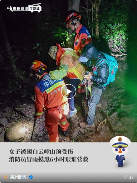 2025年10月22日下午,惠陽區(qū)新圩鎮(zhèn)白云嶂山頂發(fā)生一起緊急救援事件。一名女性登山愛好者因腳踝扭傷被困山頂,無法自行下山。新圩鎮(zhèn)專職消防隊接警后迅速響應,歷經近6小時徒步救援,最終成功將被困女子轉移至安全地帶。