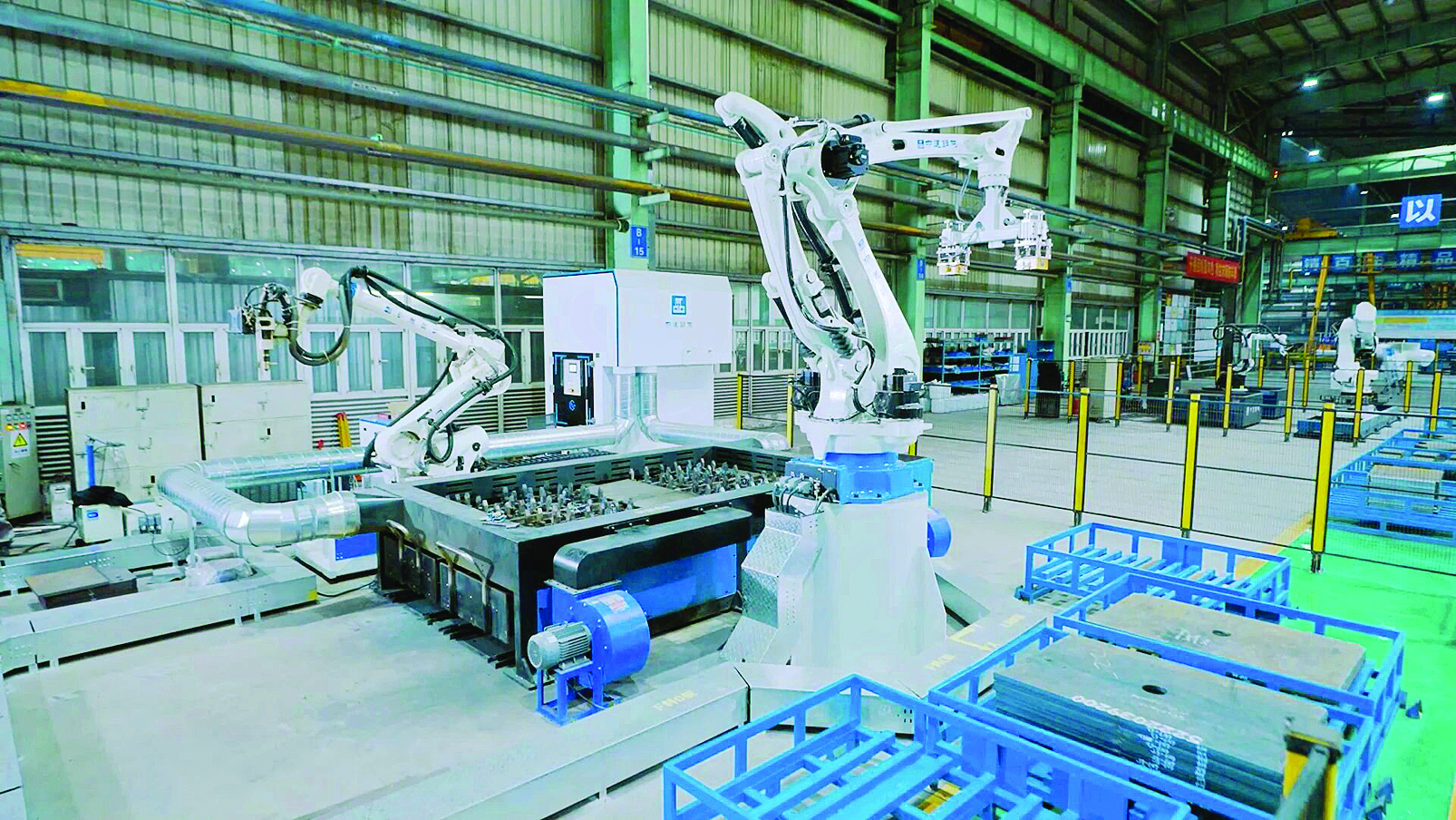 走進(jìn)中建鋼構(gòu)廣東有限公司生產(chǎn)基地,60余臺(tái)智能化機(jī)器人集群正高速運(yùn)轉(zhuǎn),智能坡口切割、懸臂式焊接等工序一氣呵成,火花四濺中,鋼板被精準(zhǔn)拼接成各類鋼構(gòu)件。今年以來,該基地新增25臺(tái)工業(yè)機(jī)器人,輕鋼產(chǎn)線自動(dòng)化率顯著提升,大直徑水利管道產(chǎn)線完成高端化改造,數(shù)智化轉(zhuǎn)型不僅降低了運(yùn)營(yíng)成本,更成為企業(yè)核心競(jìng)爭(zhēng)力的重要支撐。