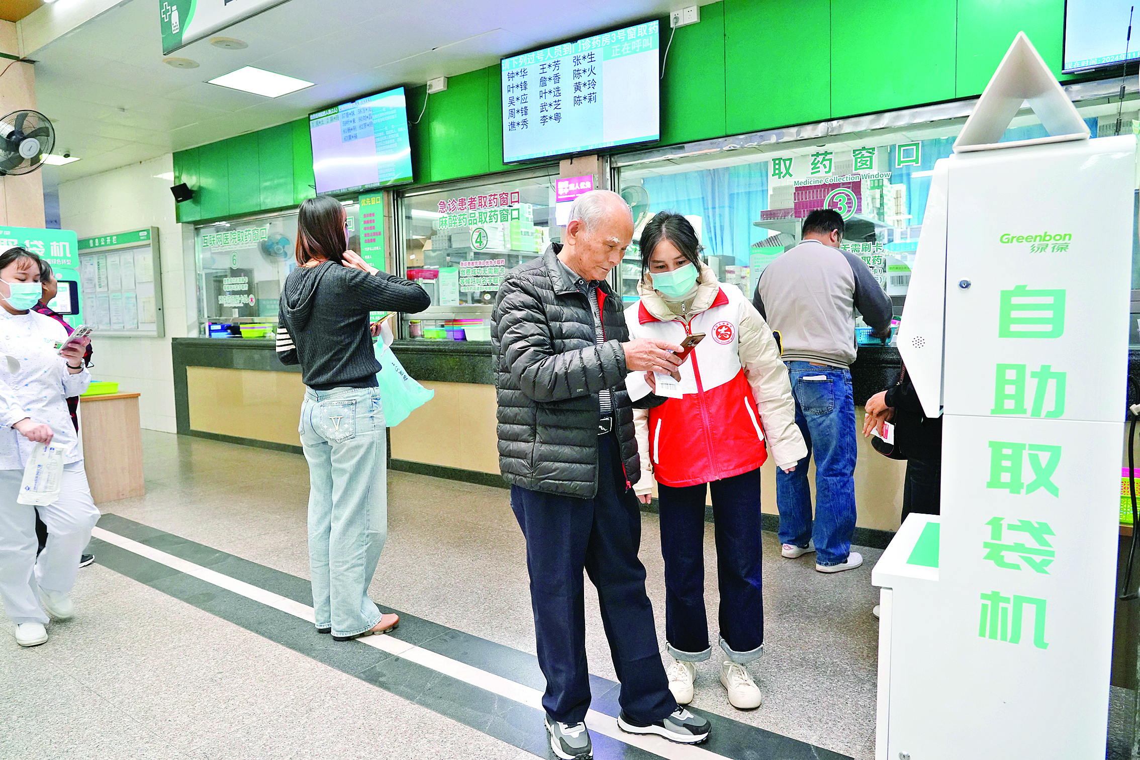 醫(yī)院志愿者引導(dǎo)患者就醫(yī)。