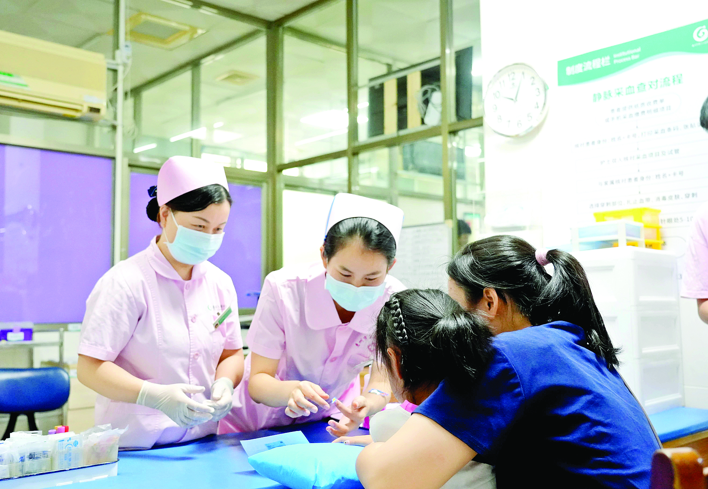 兒科護(hù)士正在為兒童抽血。