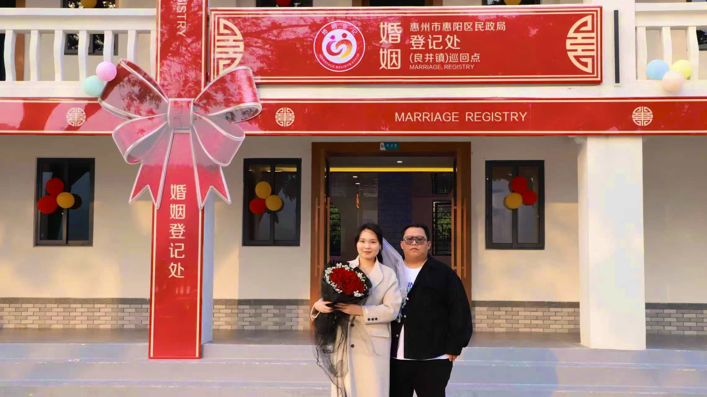 第二對(duì)良井本地小夫妻,原計(jì)劃前往惠城區(qū)拍攝婚紗照,聽聞這里有個(gè)浪漫打卡點(diǎn),便特意前來體驗(yàn)。坐花車、游花船,工作人員精心準(zhǔn)備的一系列浪漫環(huán)節(jié),讓小兩口驚喜不已。