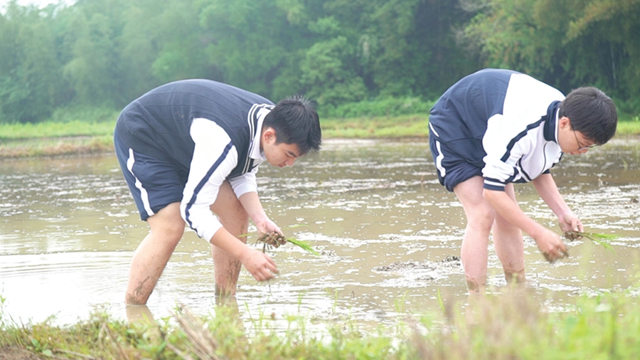 當(dāng)天,同學(xué)們紛紛卷起褲腿,踩入水田,體驗(yàn)水稻插秧勞動(dòng)。“在學(xué)習(xí)的過程中,我們深刻體會(huì)到鄉(xiāng)村振興的重要性以及勞作的辛苦,也更加明白了勞動(dòng)最光榮的道理,收獲很多!睂W(xué)生胡嚴(yán)文說。