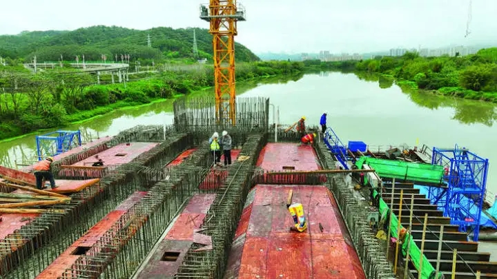 龍門(mén)大橋新建工程項(xiàng)目施工現(xiàn)場(chǎng)。