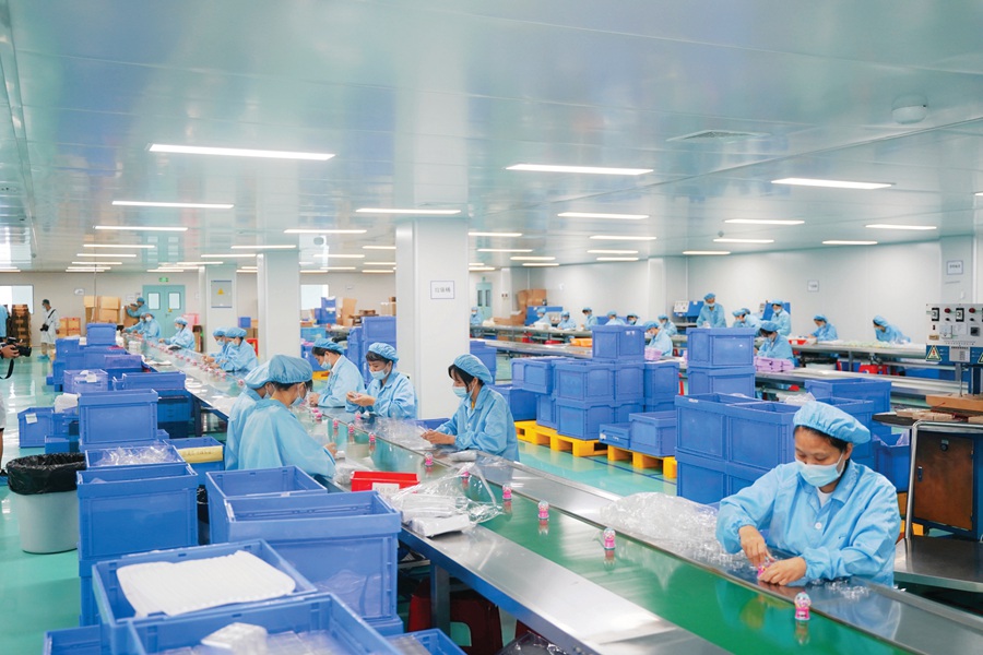位于龍門工業(yè)園的惠州市深同躍實(shí)業(yè)有限公司生產(chǎn)線上,工人們加緊生產(chǎn)。 惠州日?qǐng)?bào)記者湯渝杭 攝