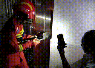 現(xiàn)場消防員利用工具破拆房門