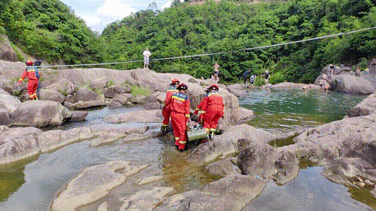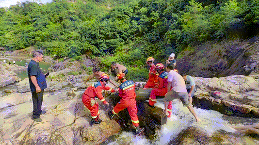 經(jīng)觀察,山上亂石眾多,水流湍急,石頭上長滿了青苔,且坡陡路滑,讓救援增加了難度。