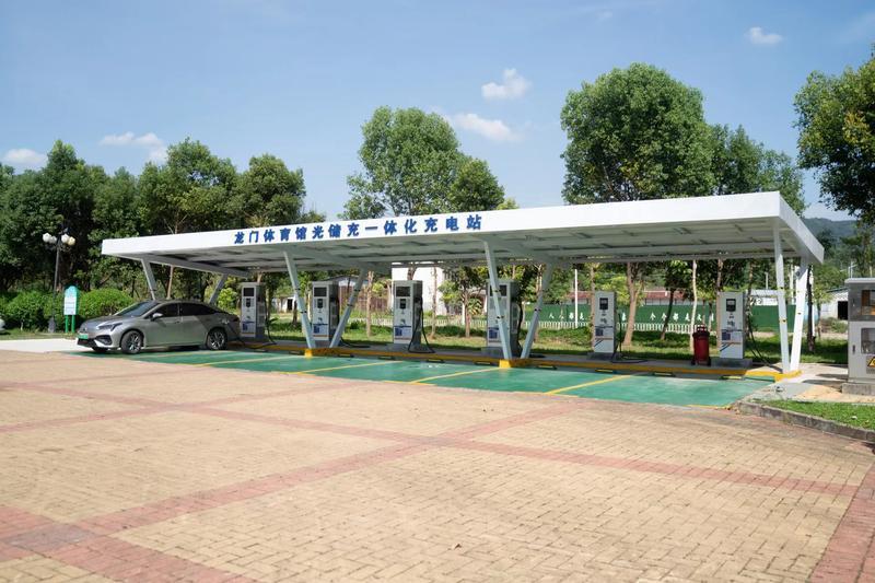 位于龍門體育館的“光儲充”一體化充電站;葜萑請笥浾邷搴 攝