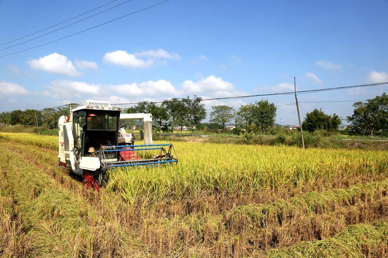 日前,記者在龍江鎮(zhèn)良塘村、格朗村、石前村、嶺咀村看到,各村大片稻田一片金黃,風(fēng)吹稻浪,好一幅豐收的美景圖。收割機(jī)在金色的稻田里來回穿梭,收割、脫粒、碎稈還田等工序一氣呵成。