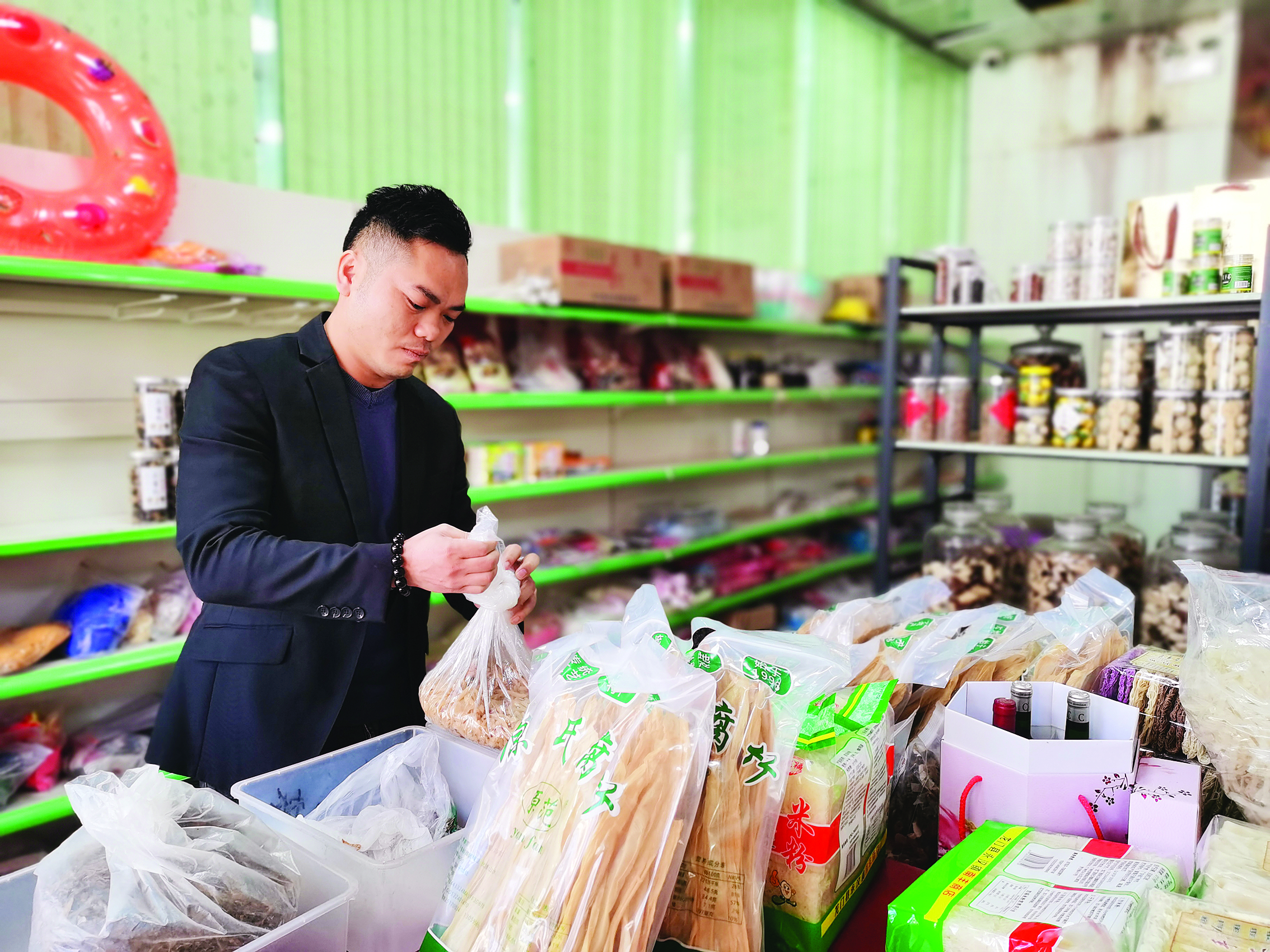 姚文超在整理店里的特產(chǎn)。