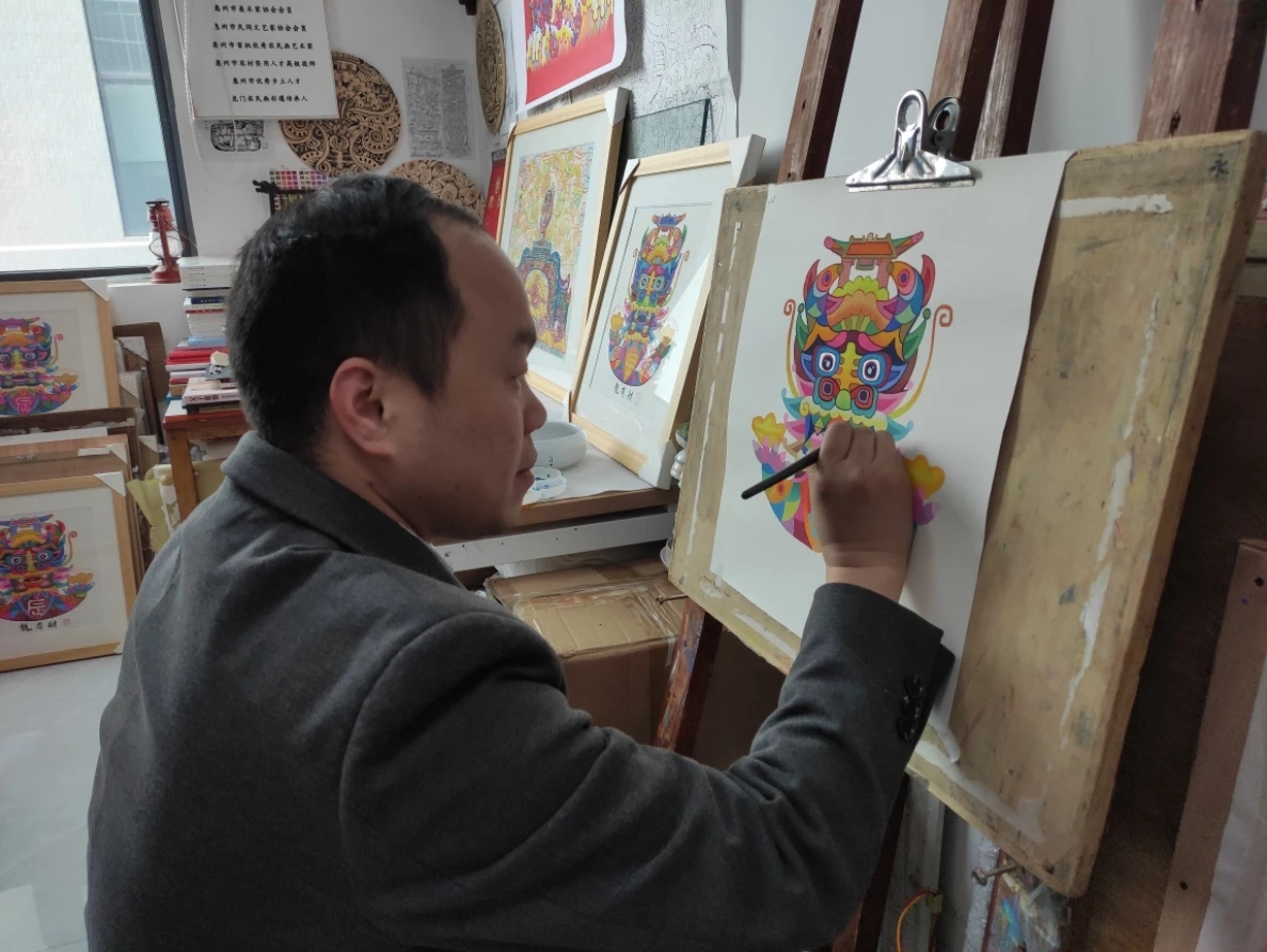 近期,龍門農(nóng)民畫協(xié)會會長、85后畫家鐘永廉創(chuàng)作了《飛龍呈祥迎新歲》系列作品,以龍門農(nóng)民畫的獨特視角展現(xiàn)龍圖騰,以鄉(xiāng)土藝術(shù)描繪魚躍龍門的魅力。