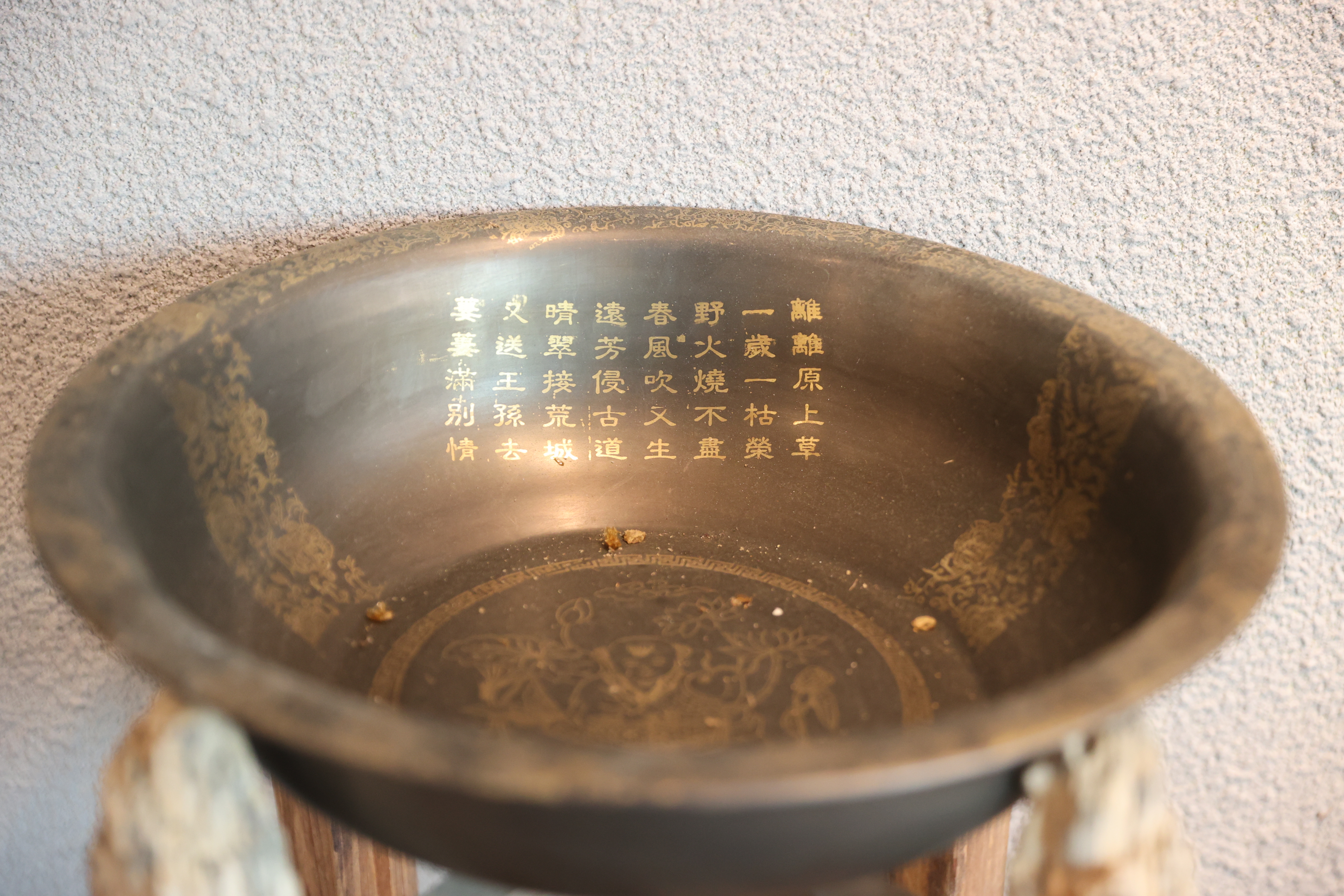 村民用過(guò)的水盆,上面刻有詩(shī)句與精美的紋路。
