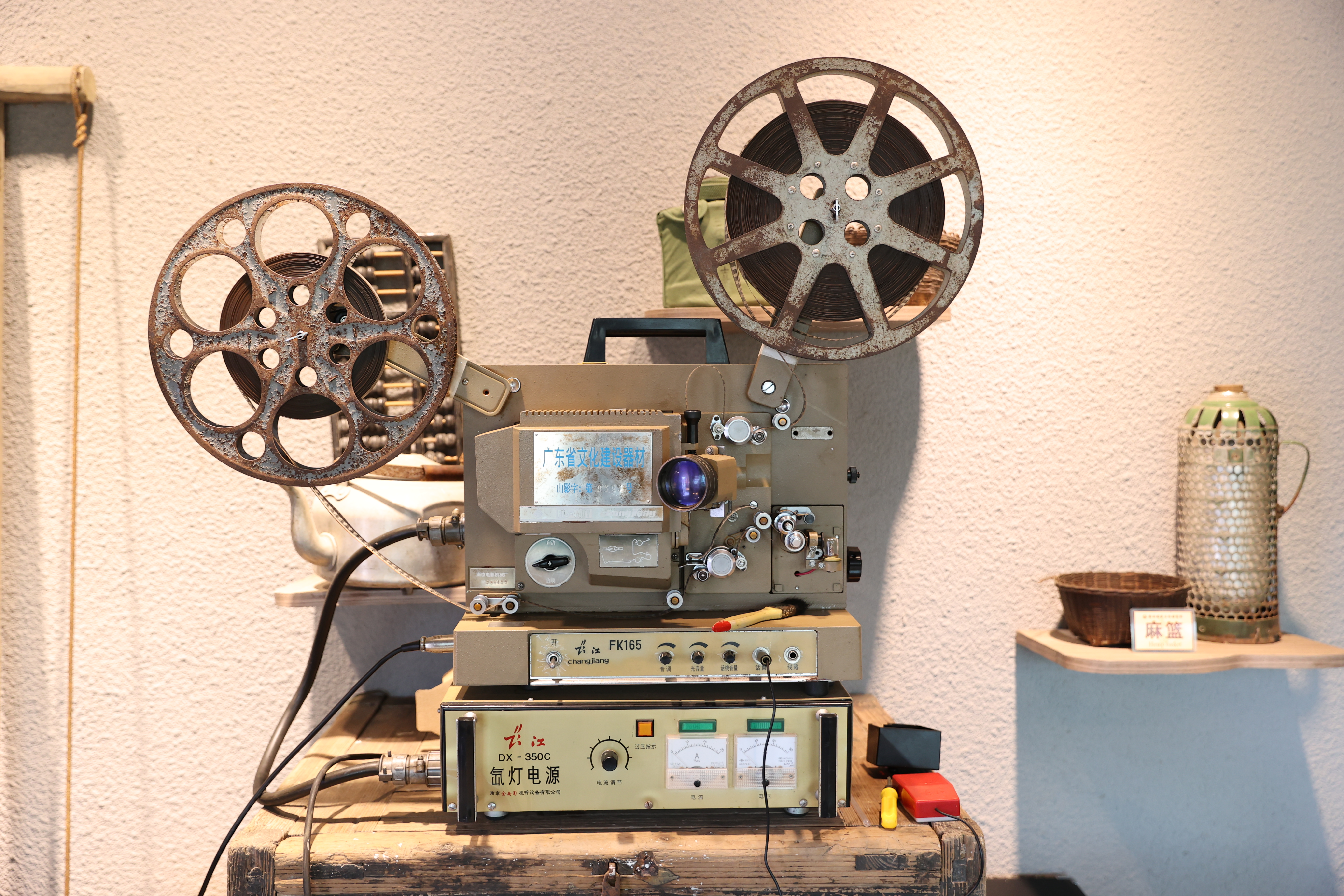 藍(lán)田瑤族文化展覽館內(nèi)展示的舊式電影放映機(jī)。