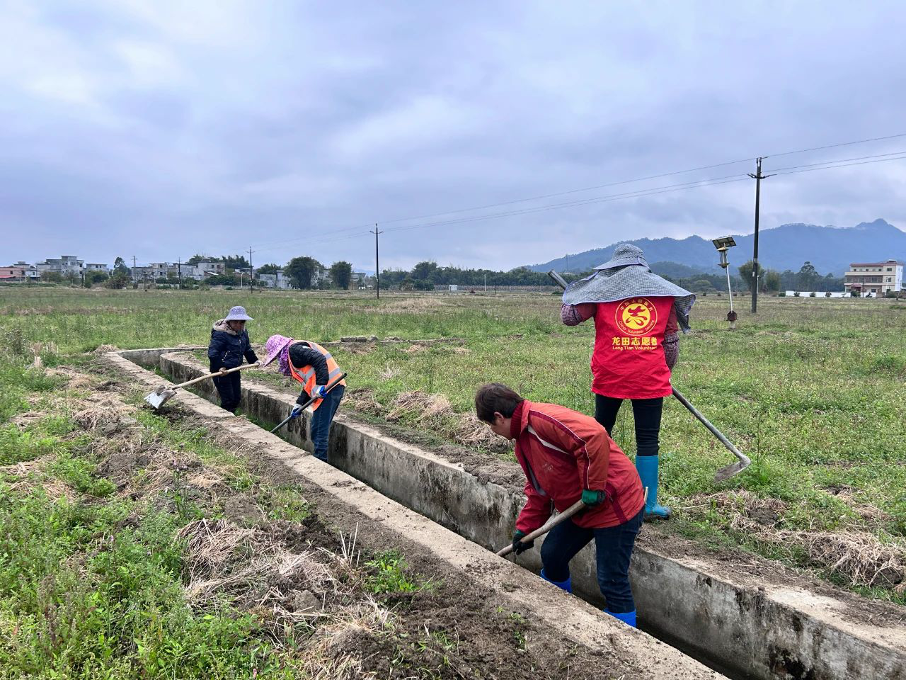 龍?zhí)镦?zhèn)西埔村黨群對灌渠進行清淤;葜萑請笥浾唿S宇翔 通訊員龍融心 攝