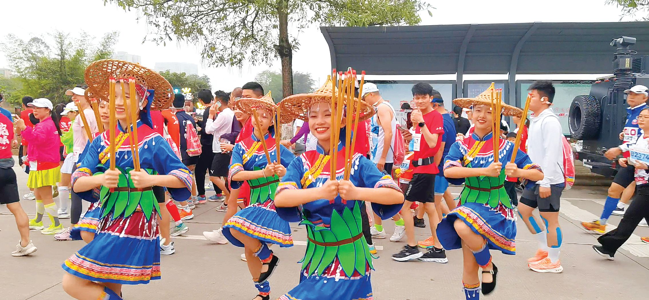 為提升賽事趣味性和群眾參與性,龍門誠意滿滿,實打?qū)崱俺业住绷。龍門農(nóng)民畫結(jié)合旗袍秀全新亮相,融合嶺南傳統(tǒng)與典雅時尚,綻放獨特魅力;近距離感受藍田舞火狗簡樸獨特的舞姿,生動展現(xiàn)瑤族文化的魅力。此外,盒籮舞、醒獅等龍門非遺也精彩亮相,為跑友、觀眾和游客呈現(xiàn)一場豐富多彩的非遺文化盛宴,展現(xiàn)龍門的活力與魅力,彰顯全民參與、共享運動的理念。