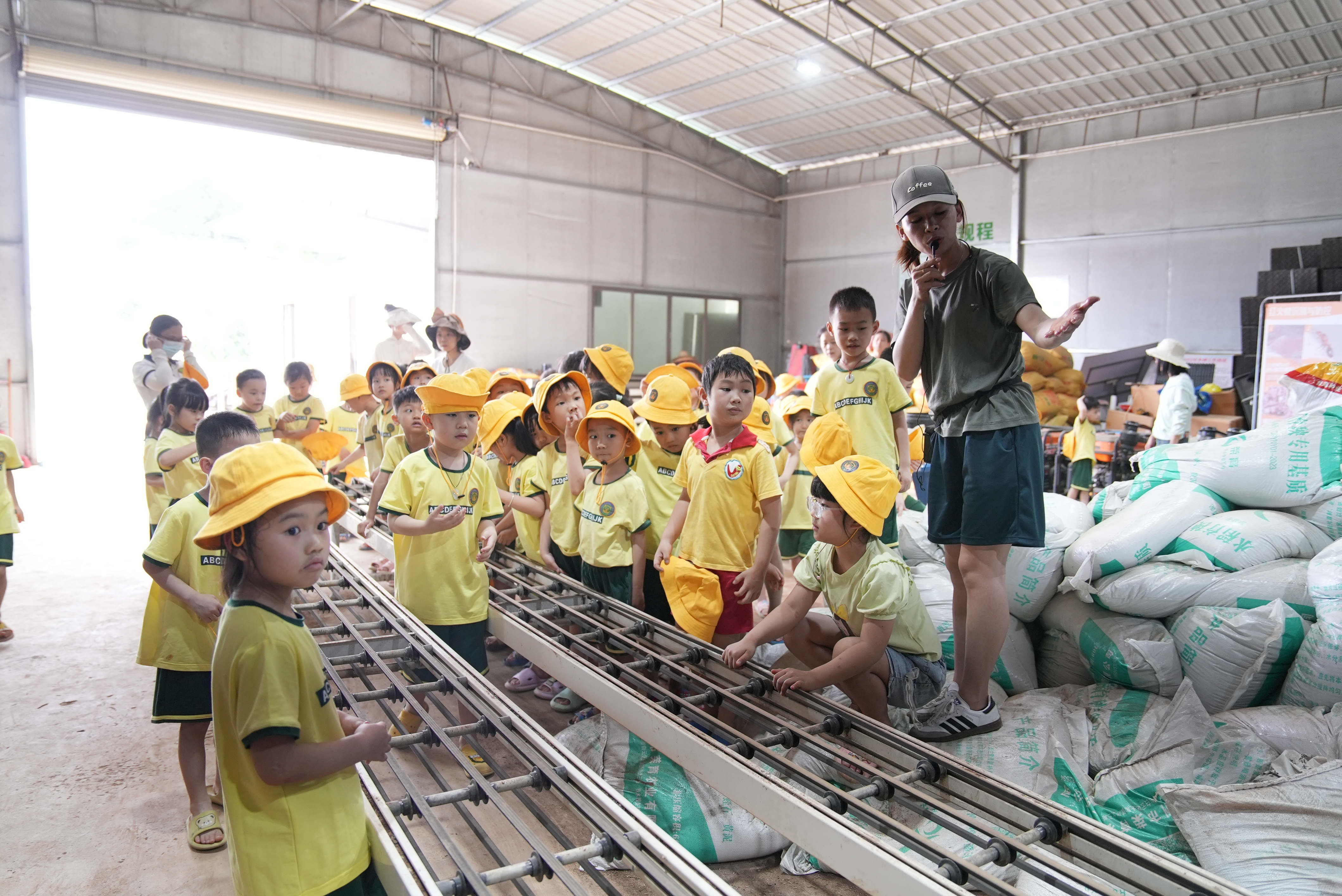 “小朋友們,這是我們的稻種,這是我們培育秧苗的機器。我們把空秧盤放在機器上,機器會自動撒底肥、種子、面肥,完成后就可以出盤,種子會在兩到三天內(nèi)發(fā)芽,緊接著送到大棚里培育……”在龍門縣鴻遠種子有限公司育秧工廠內(nèi),該公司副總經(jīng)理鐘敏怡化身講解員,耐心地為孩子們講解育苗方法、插秧方法、水稻成長過程等。孩子們把她團團包圍,興致勃勃地聆聽、“消化”知識。