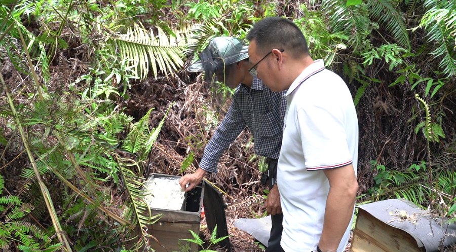 龍門供銷社養(yǎng)蜂研究所工作人員到現(xiàn)場指導(dǎo)。 惠州日?qǐng)?bào)記者黃宇翔 通訊員龍融心 攝