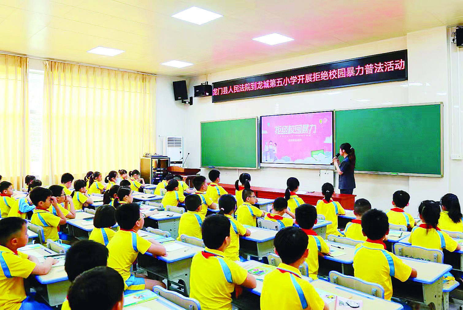 龍門(mén)縣人民法院到龍城第五小學(xué)開(kāi)展拒絕校園暴力普法活動(dòng)。