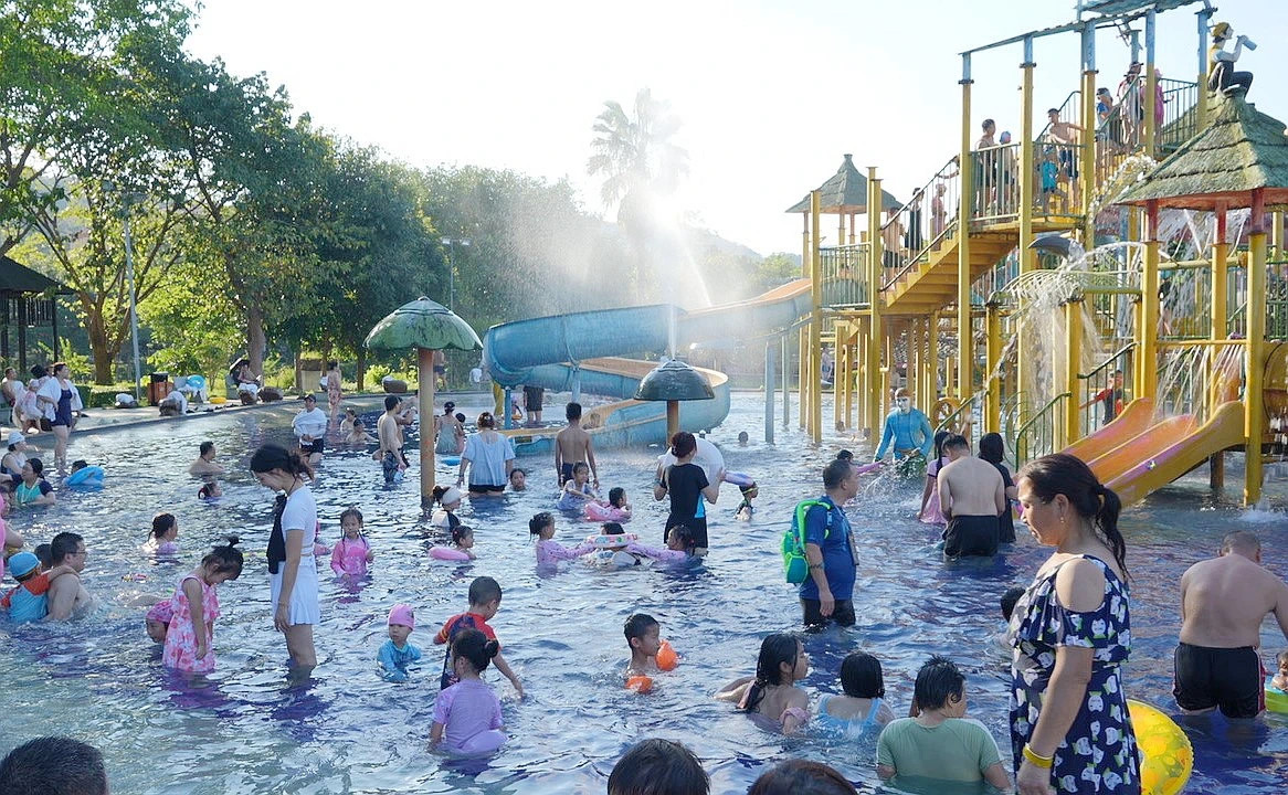 “今年國慶假期的游客量基本達到了我們的預(yù)期。10月1日至5日,景區(qū)客房都是爆滿狀態(tài)?腿酥饕詮V州、深圳、東莞等地游客為主,大部分以家庭為單位出游!蹦侠ド綔厝笥^園副總經(jīng)理陳海介紹,園區(qū)有79個溫泉池和水上樂園,還有漂流、冰雪世界、騎馬、山地車等豐富多彩的體驗項目,連日來吸引了大批珠三角地區(qū)游客慕名前來。假期前5天,景區(qū)600多間客房就已訂滿。