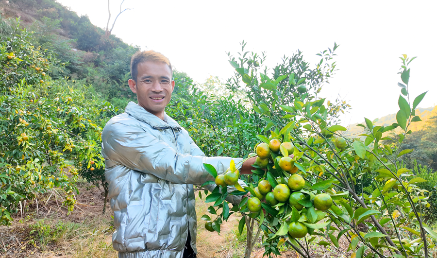 財(cái)來柑桔專業(yè)合作社負(fù)責(zé)人鄧財(cái)林從2014年開始種植年桔并發(fā)展休閑農(nóng)業(yè),2021年重新規(guī)劃農(nóng)場(chǎng)種植結(jié)構(gòu),在原來種植年桔的基礎(chǔ)上,引進(jìn)優(yōu)質(zhì)種苗,種植茶枝柑,并成立財(cái)來柑桔專業(yè)合作社。每年到了施肥、打藥、采摘期,都會(huì)聘請(qǐng)本地村民過來幫忙,給當(dāng)?shù)卮迕駧砑议T口的就業(yè)崗位。