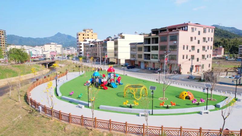 地派鎮(zhèn)還充分利用圩鎮(zhèn)中心閑置荒地,科學(xué)布局,新建綠美生態(tài)小公園。公園總面積約2.1萬平方米,綠化面積占比約70%。公園內(nèi)配備滑梯、秋千,為兒童設(shè)置安全的游樂區(qū);設(shè)置籃球場、乒乓球場、健身器材等,為成年人打造健身活動區(qū)。沿河建設(shè)的慢行步道巧妙串聯(lián)起公園各個功能區(qū)與特色景觀節(jié)點。