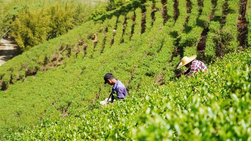采茶工采摘鮮嫩茶芽;葜萑請笥浾唿S宇翔 通訊員龍融心 攝