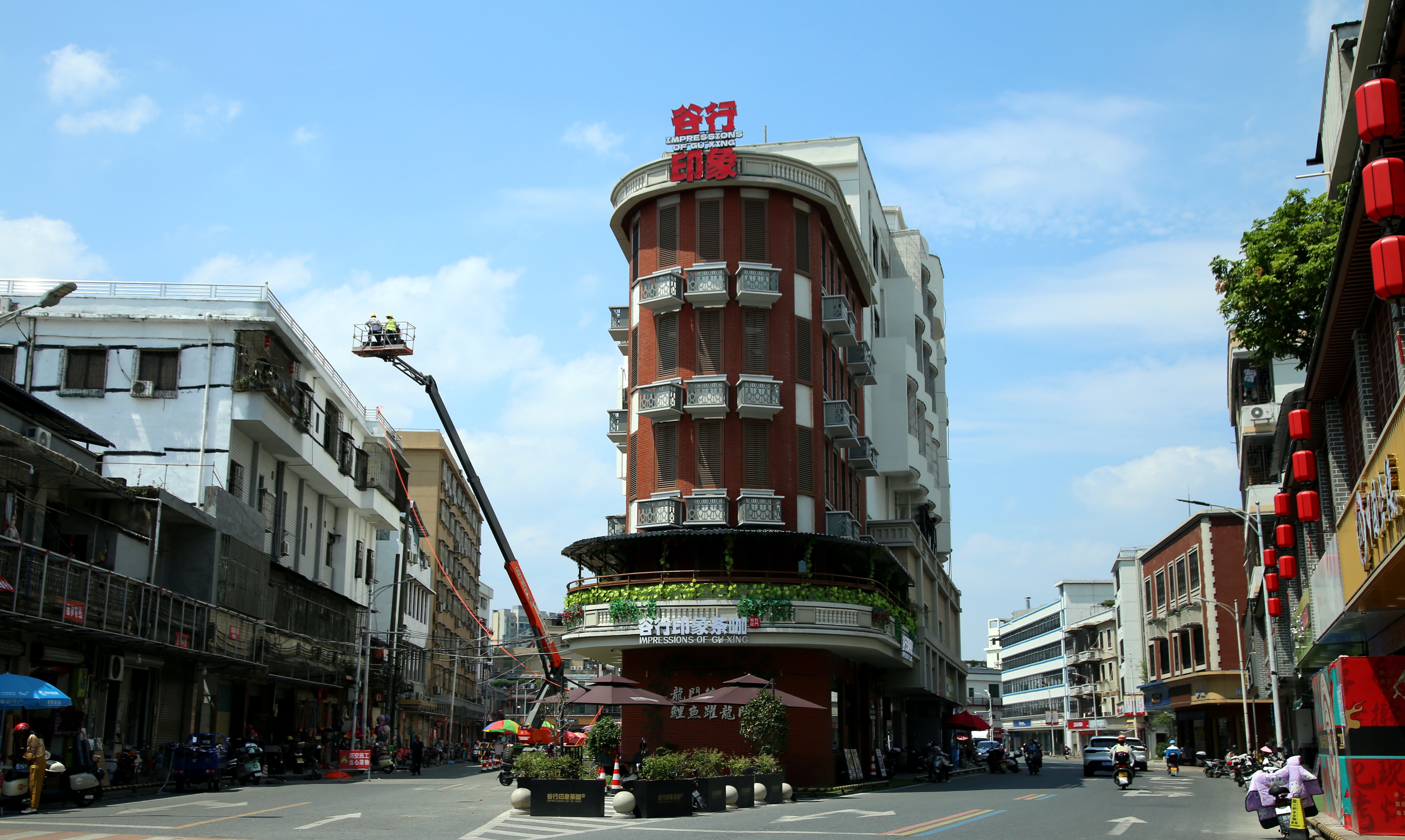在美麗示范主街上,兩側(cè)房屋的窗戶、墻面、招牌規(guī)范有序,風(fēng)格統(tǒng)一,老街文化韻味濃郁。針對(duì)街區(qū)“三線”像蜘蛛網(wǎng)一樣亂飛亂掛的現(xiàn)象,龍城街道推動(dòng)創(chuàng)新整治,將“三線”捆扎隱藏到招牌后面。這樣,既美觀簡(jiǎn)約,又大大降低改造成本。夜幕降臨時(shí),建筑上暖黃色燈光帶悄然亮起,與斑斕夜色相融,流光溢彩,讓群眾感受到這條主街的韻味與煙火氣。
