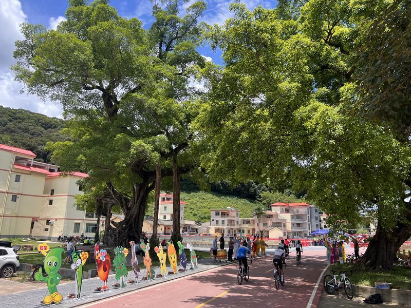 騎手們穿過中心村的千年大榕樹,感受良好人居環(huán)境和村民的熱情。 惠州日報記者黃宇翔 攝