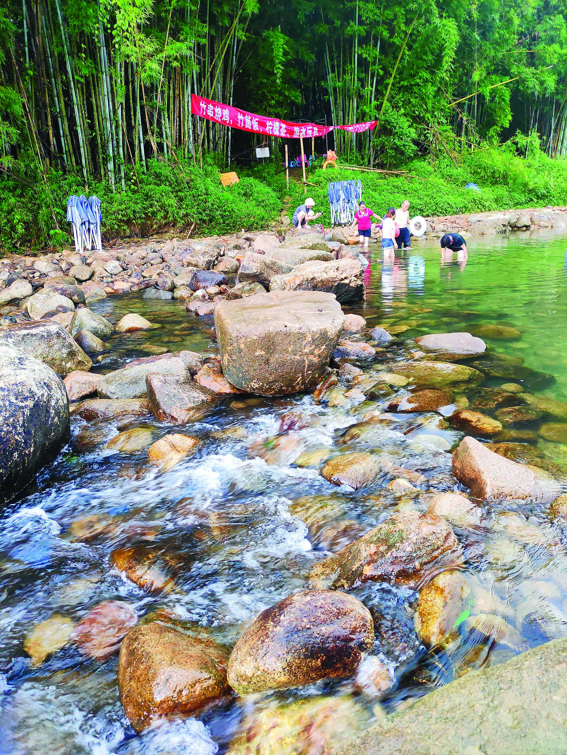 游客在南昆山爐下社區(qū)玉石河游玩;葜萑?qǐng)?bào)記者侯縣軍 攝